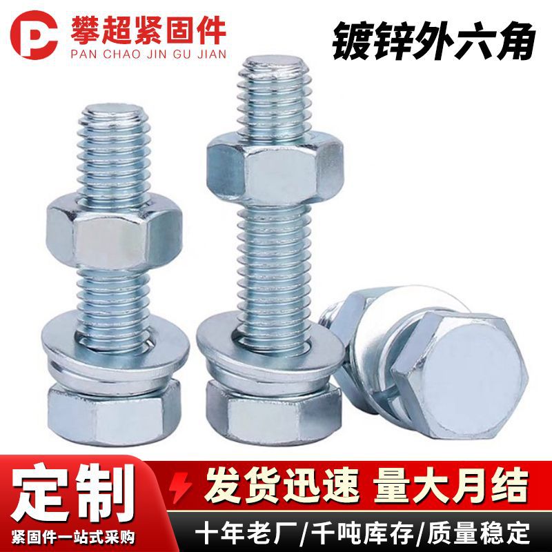 8.8级镀锌外六角螺丝螺栓螺母套装六角螺栓组合 长螺杆镀锌外六角