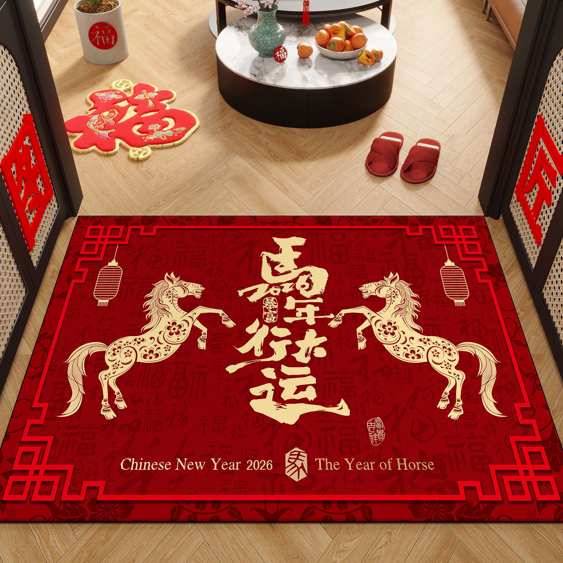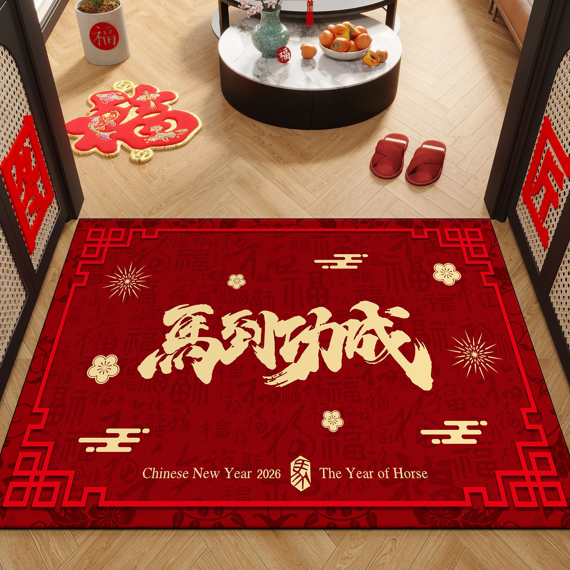 马年新款玄关门垫红色吸水防滑室内外入户脚垫2026年过年新春地毯