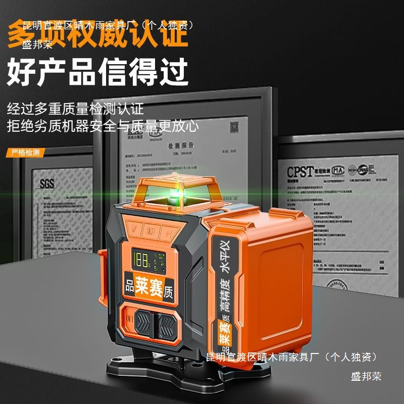 莱赛款激光红外线水平仪绿光高精度户外12线贴墙地2024新款投线仪