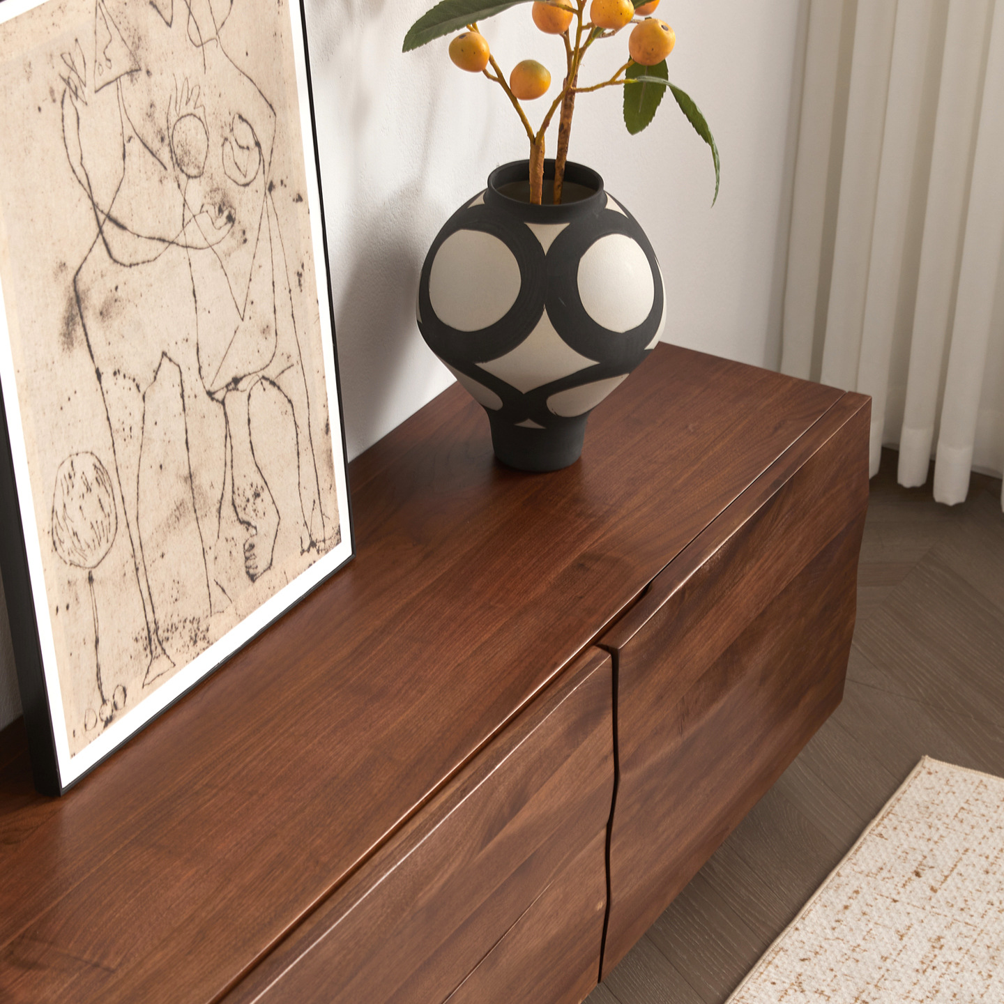 北美黑胡桃木实木电视柜北欧简约全实木客厅落地柜原木带抽储物柜