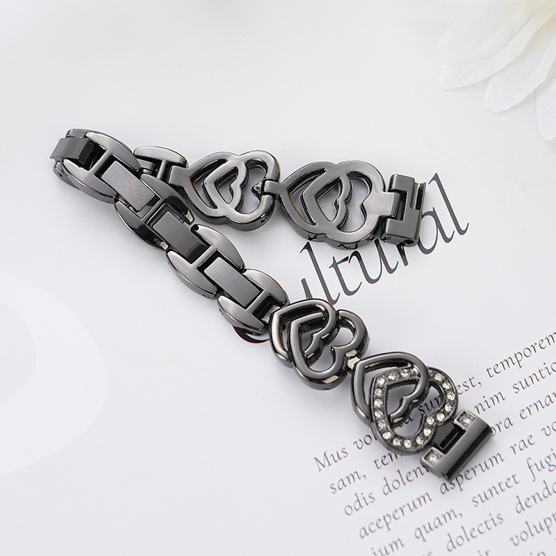 适用苹果iwatch s11-3代se和华为gt小米表带双爱心形金属闪钻