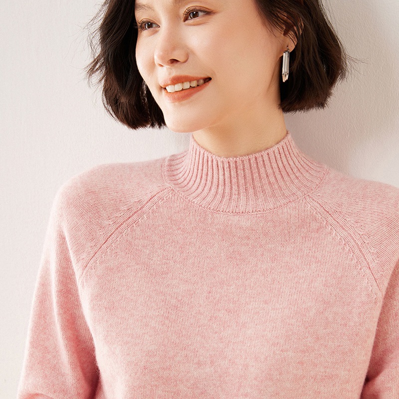 秋冬女士羊毛衫简约套头插肩袖毛衣加厚针织百搭半高领羊绒打底衫