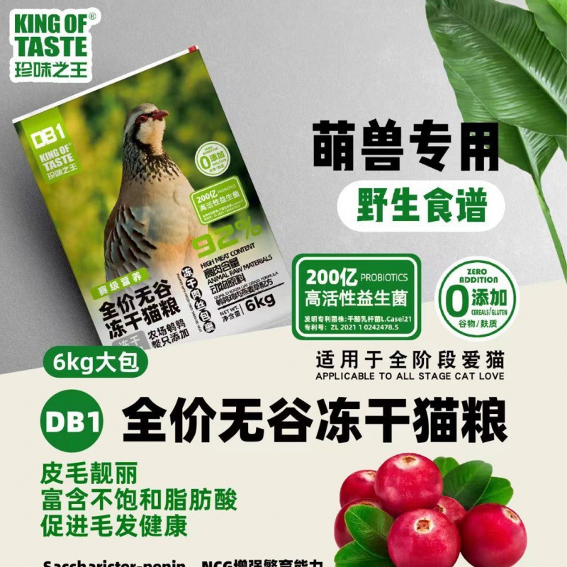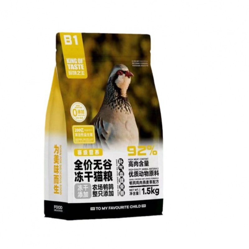 珍味之王全价无谷冻干猫粮幼猫成猫1.5kg全期粮鹌鹑鸡肉增肥专用