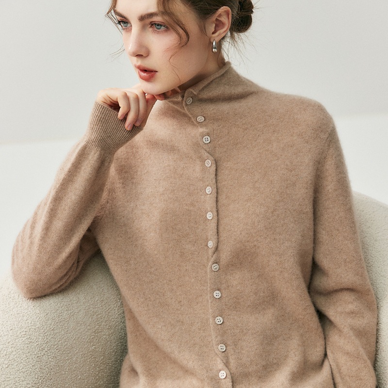 时尚简约卷边山羊绒女针织打底衫半高领内搭厚款宽松显瘦毛衣长袖