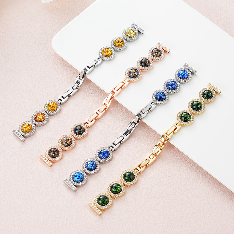 适用苹果iwatch s11-3代和小米手环表带彩珀树脂闪钻