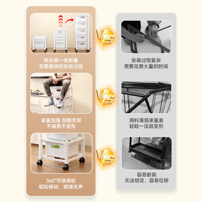 小推车置物架免安装可折叠多层收纳放锅多功能储物收纳架子分层架