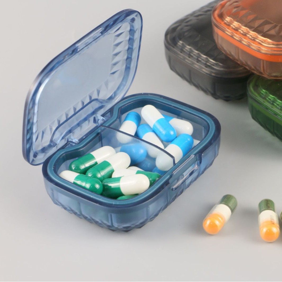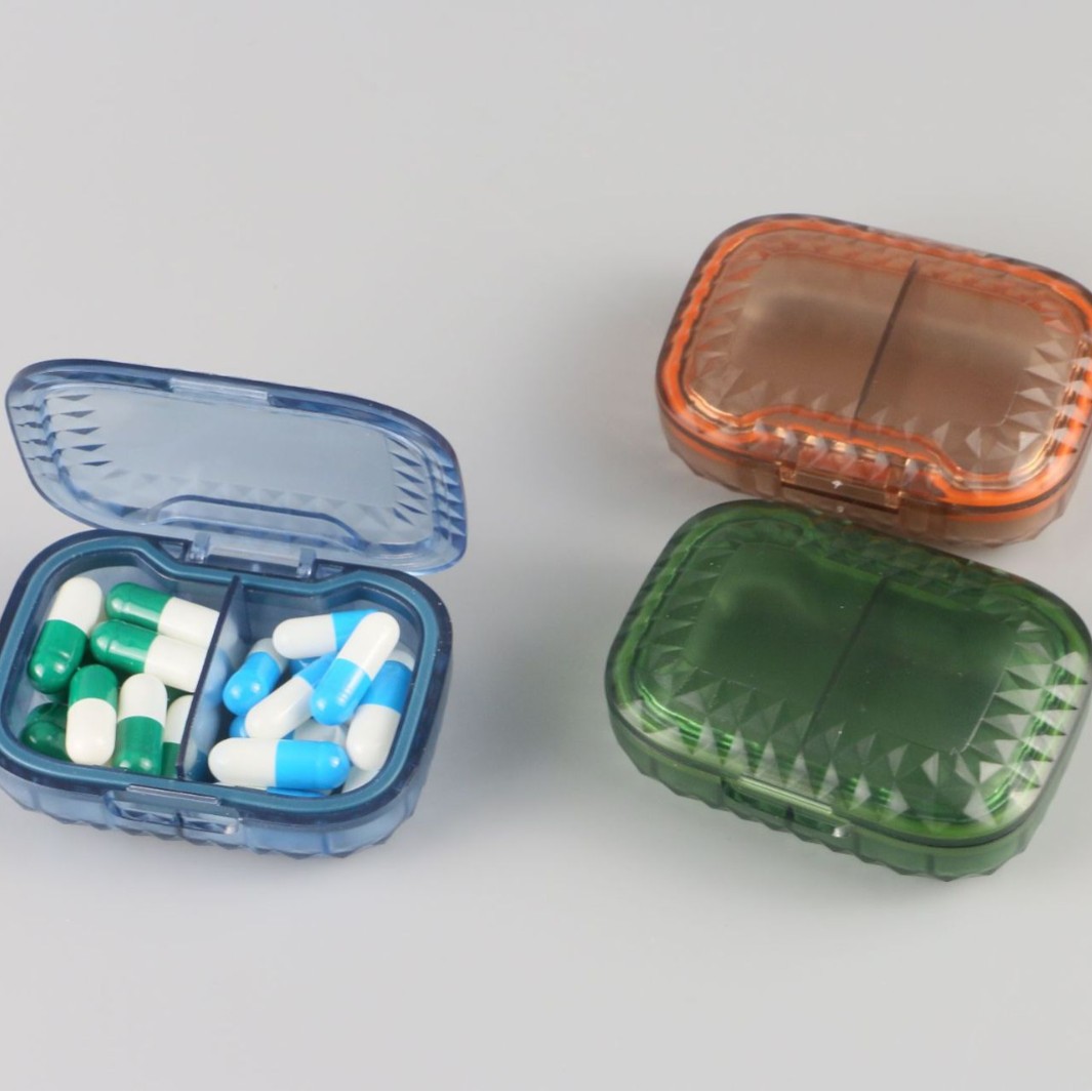 便携药盒分装随身迷你药盒批发大容量2格装药片药丸防潮收纳盒