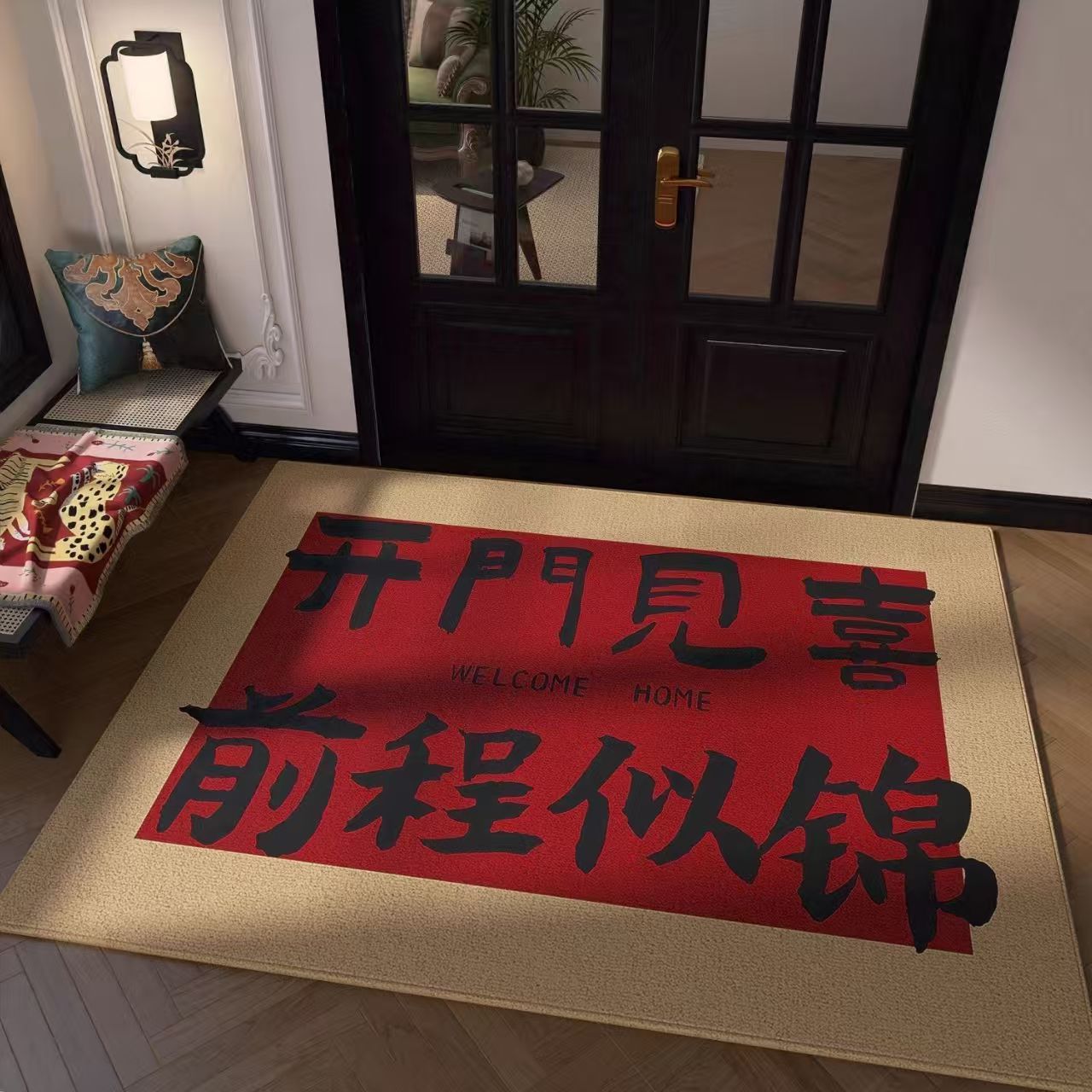 新年入户门地垫喜庆进门门口耐脏防滑脚垫红色可裁剪家用玄关地毯