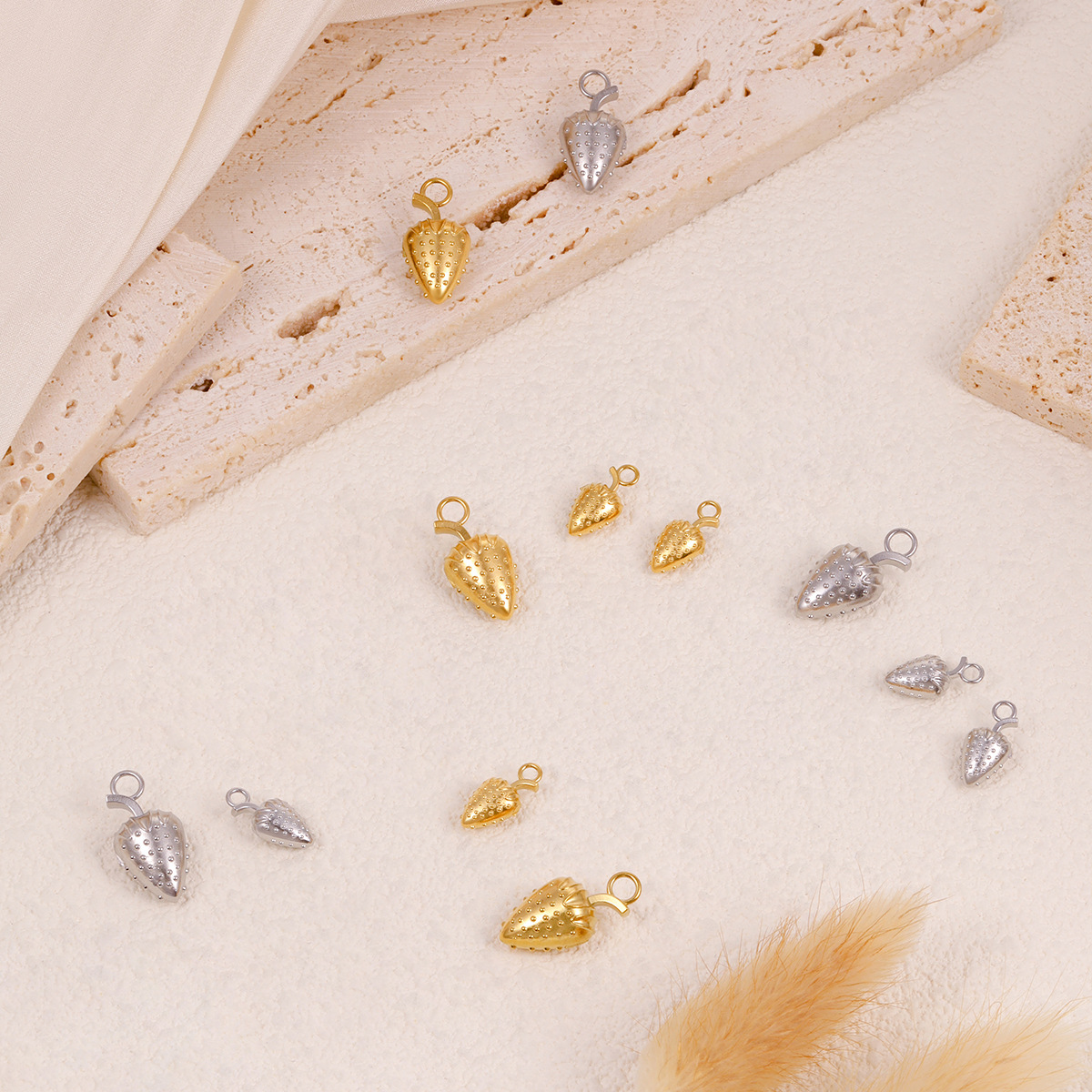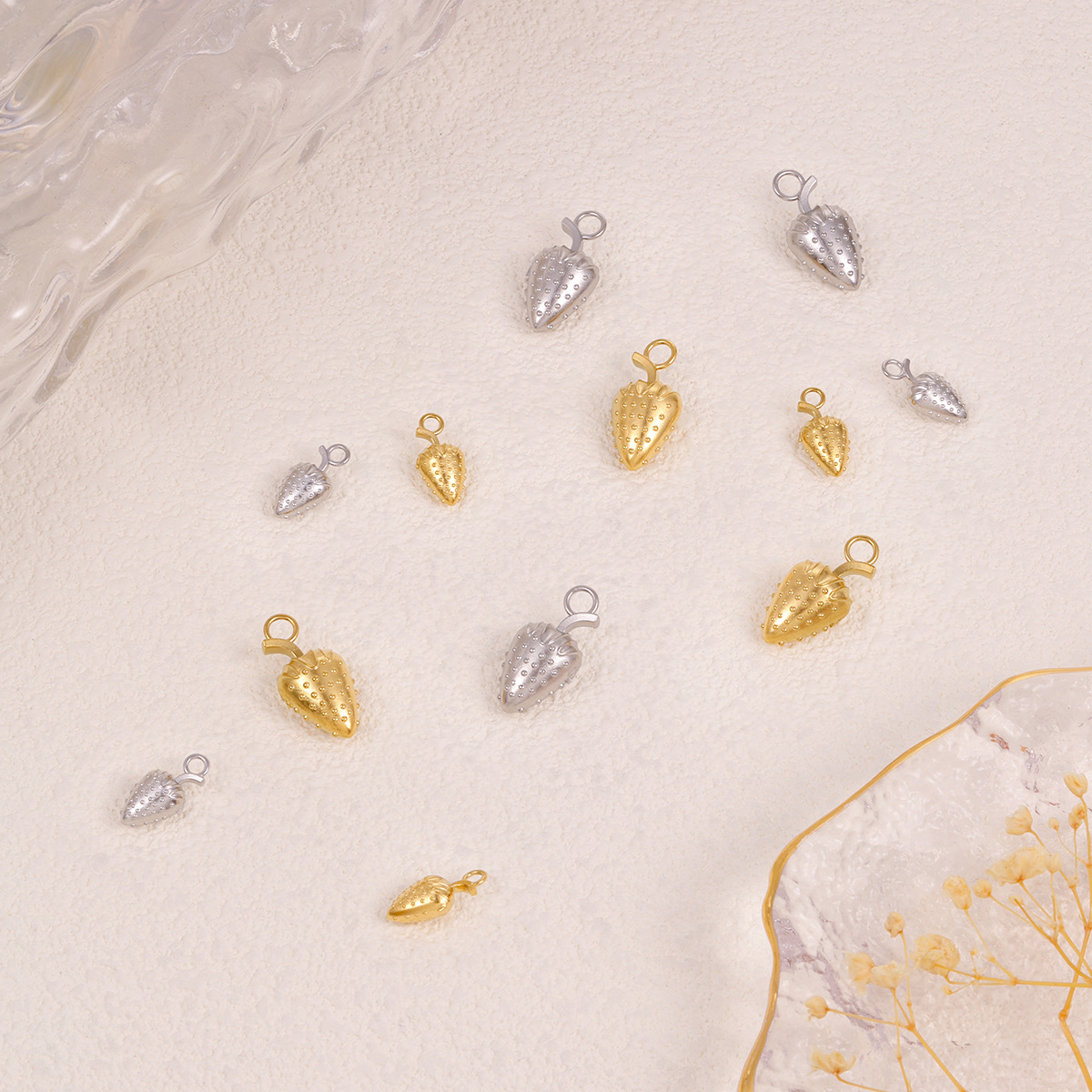 不锈钢挂件可爱立体小草莓粉铸配件DIY吊坠项链饰品耳环手链坠子