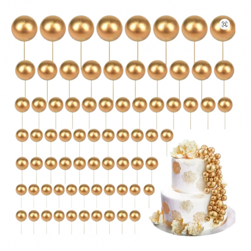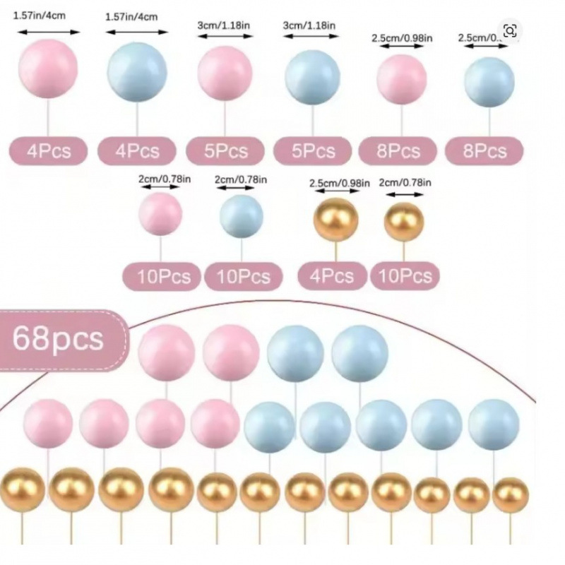 跨境热销68个套装混装蛋糕装饰彩色球套装 生日派对蛋糕插件