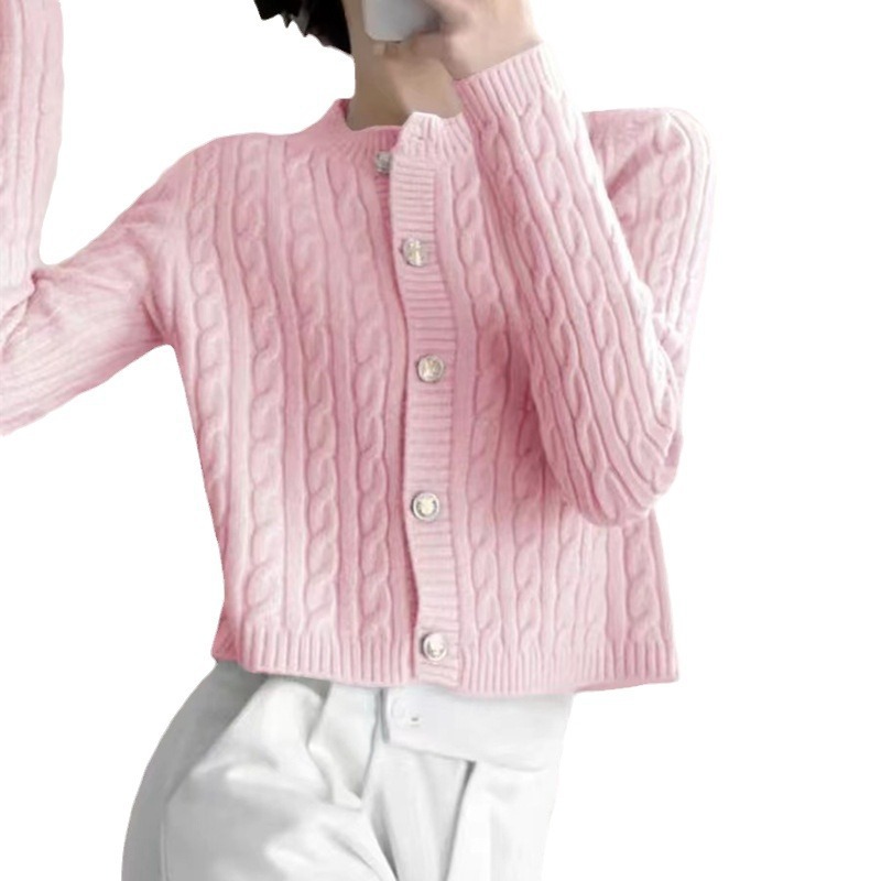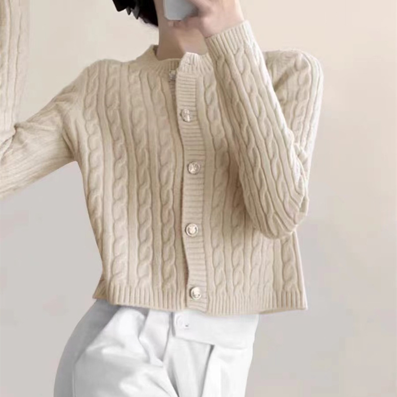 一件代发复古麻花圆领针织开衫女2024秋季软糯纯色长袖毛衣外套女