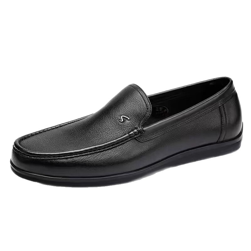 沙驰软牛皮商务休闲皮鞋男士时尚驾车鞋软底软面真皮一脚蹬豆豆鞋