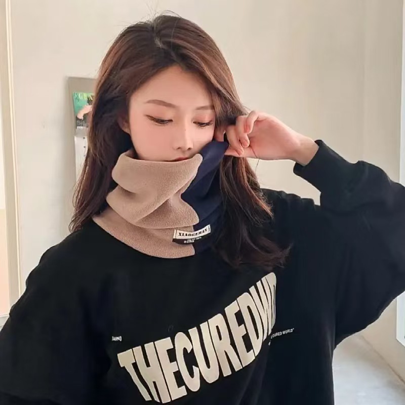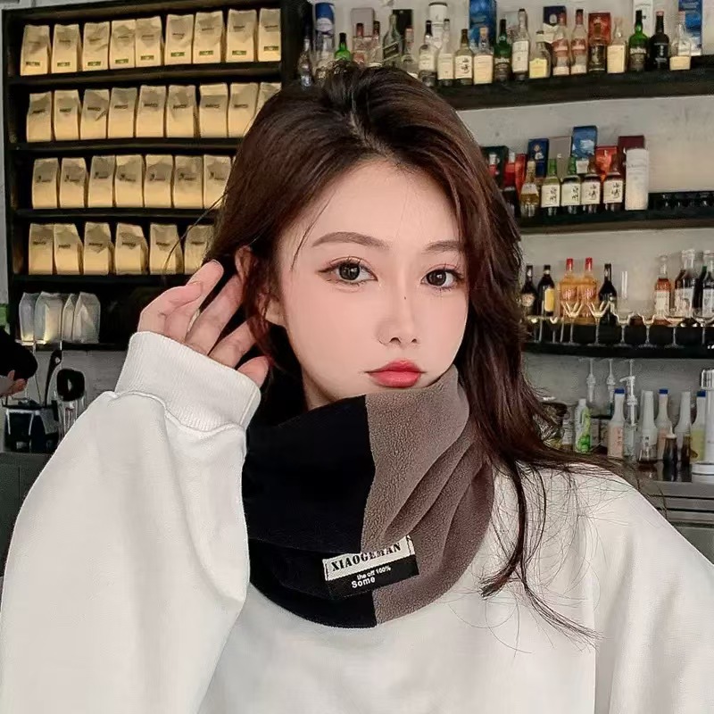新款2025围脖女秋冬季百搭拼色保暖加绒加厚遮脸面罩脖套防风围巾