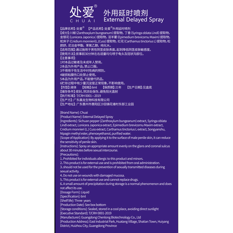 品牌类型 | 国货品牌 | | 产品名称 | 处爱早泄克星 |