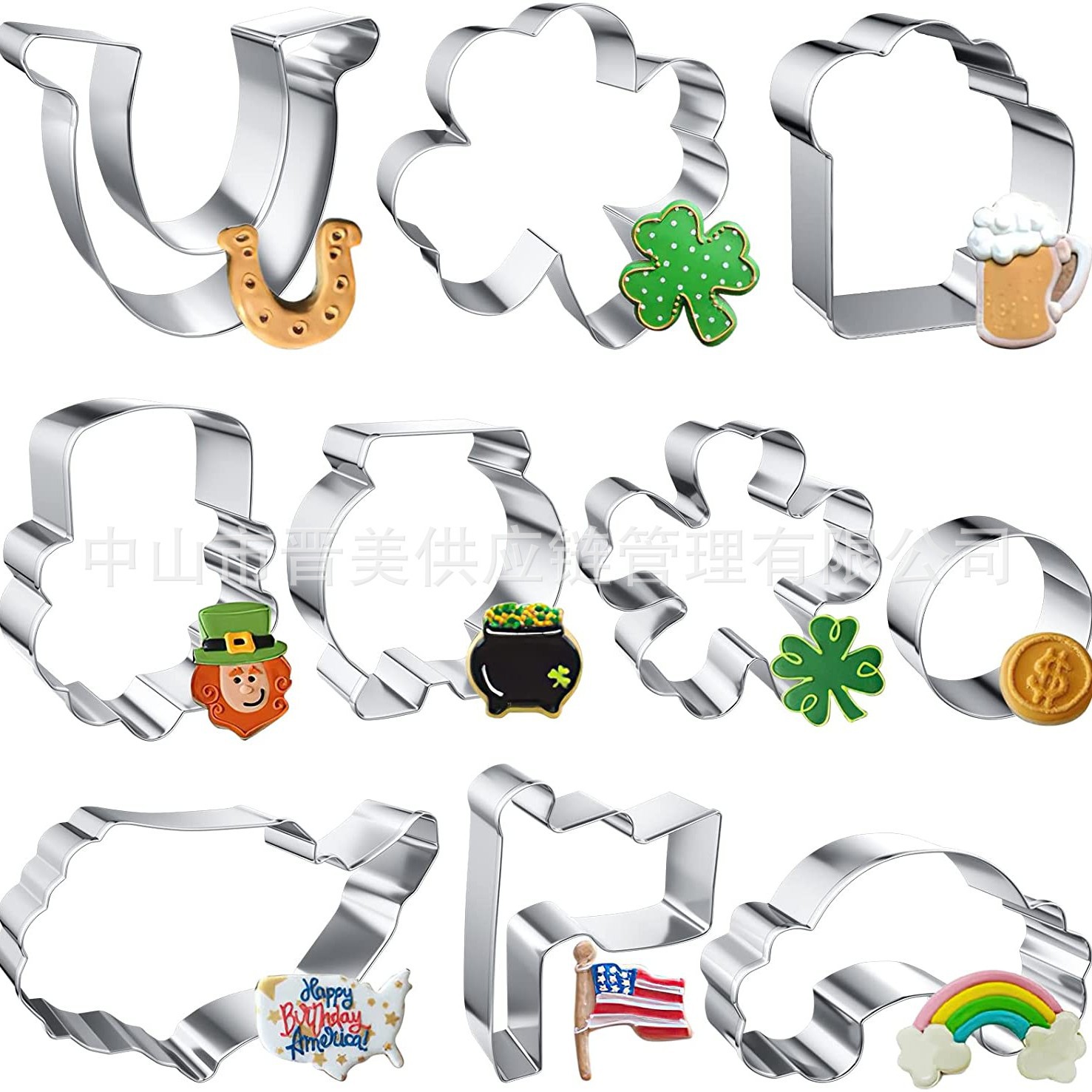 10件爱尔兰神套装不锈钢饼干模具圣帕特里克节按压式烘焙工具跨境
