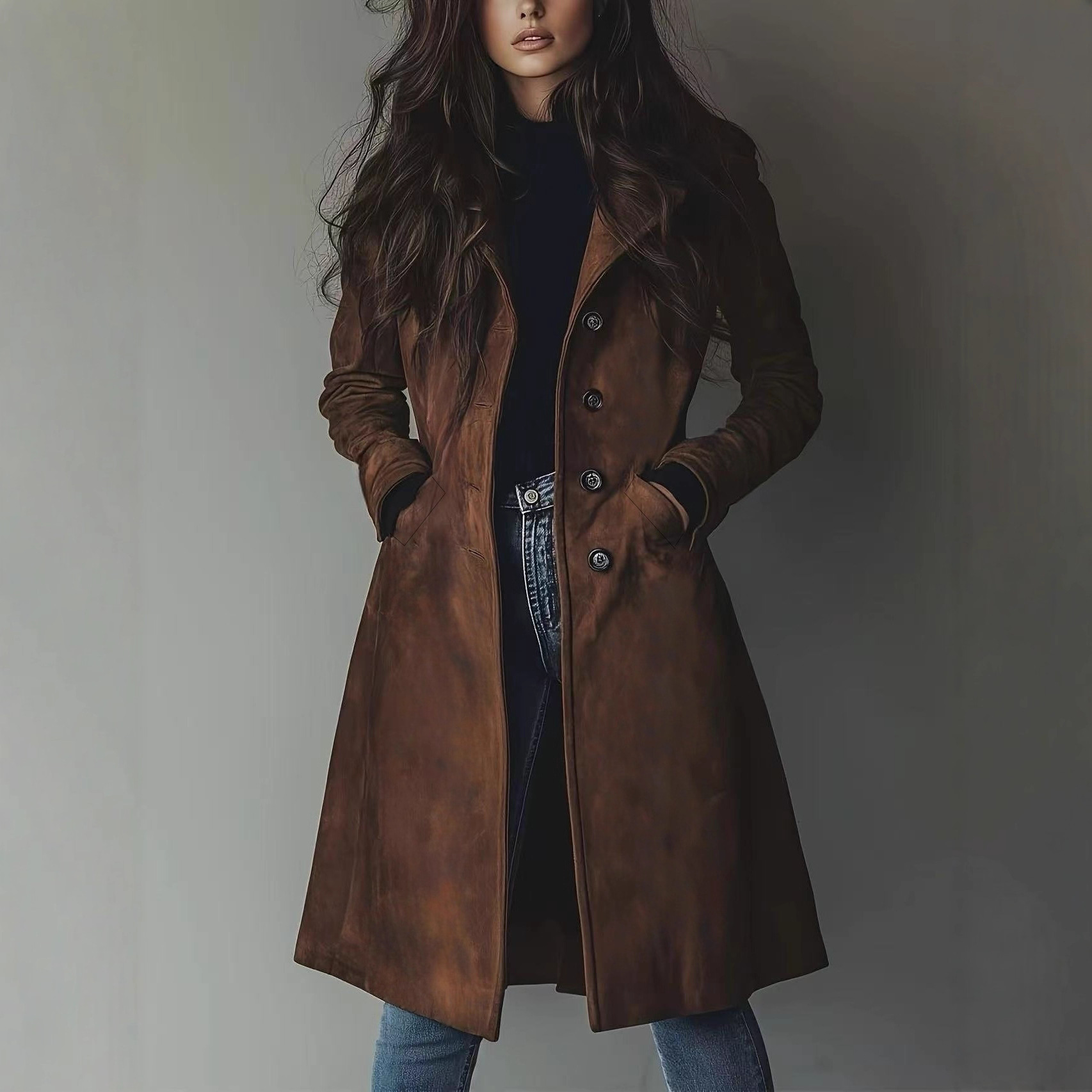 2025欧美亚马逊跨境新款女装秋冬外套 翻领西部风麂皮绒长款风衣