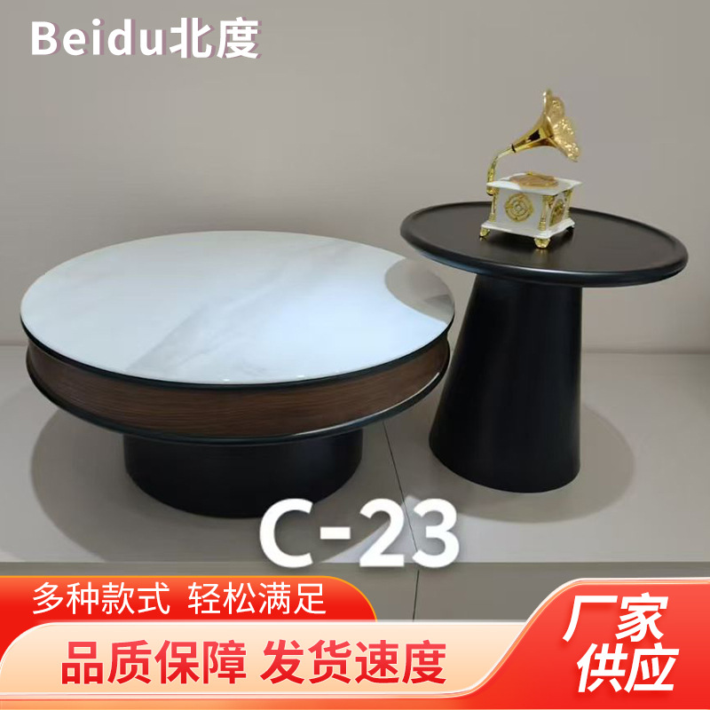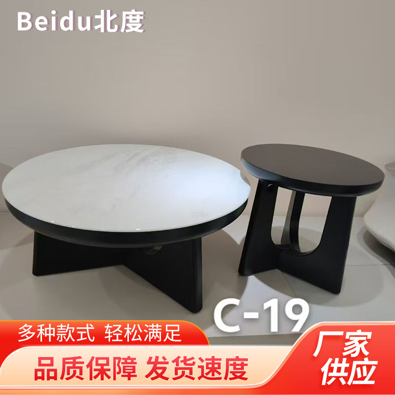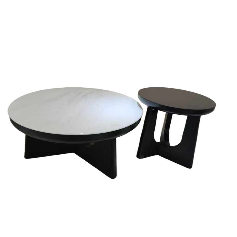 意式极简茶几小户型家用轻奢设计师款大小圆形北美黑胡桃茶几组合