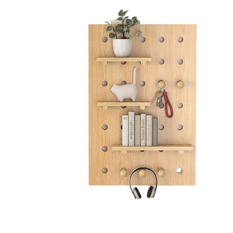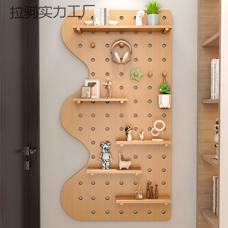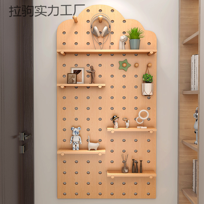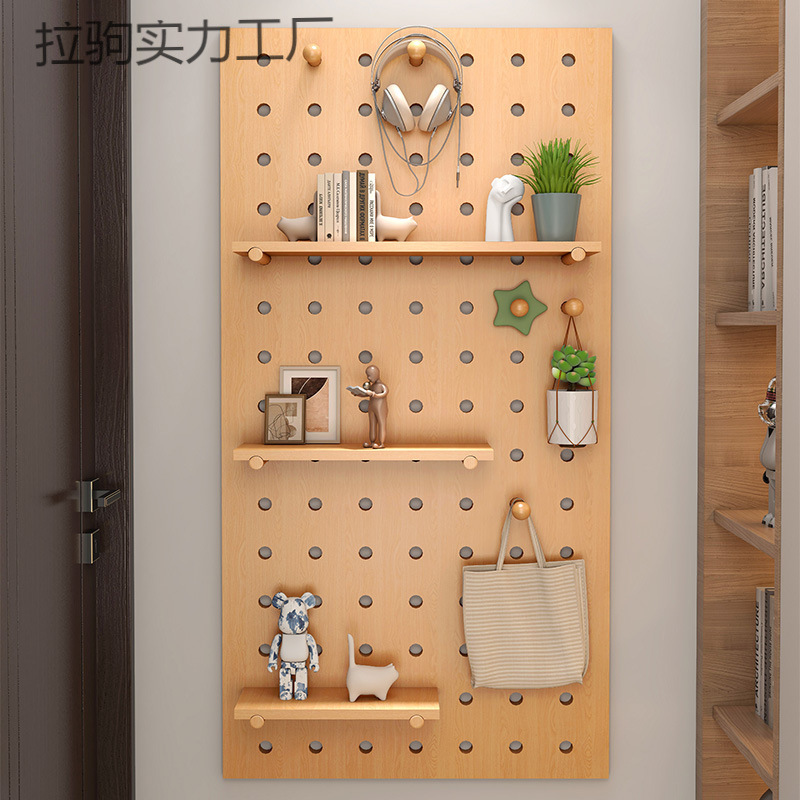 洞洞板置物架入户玄关实木墙板洞洞墙木质墙面收纳入户门挂衣客厅