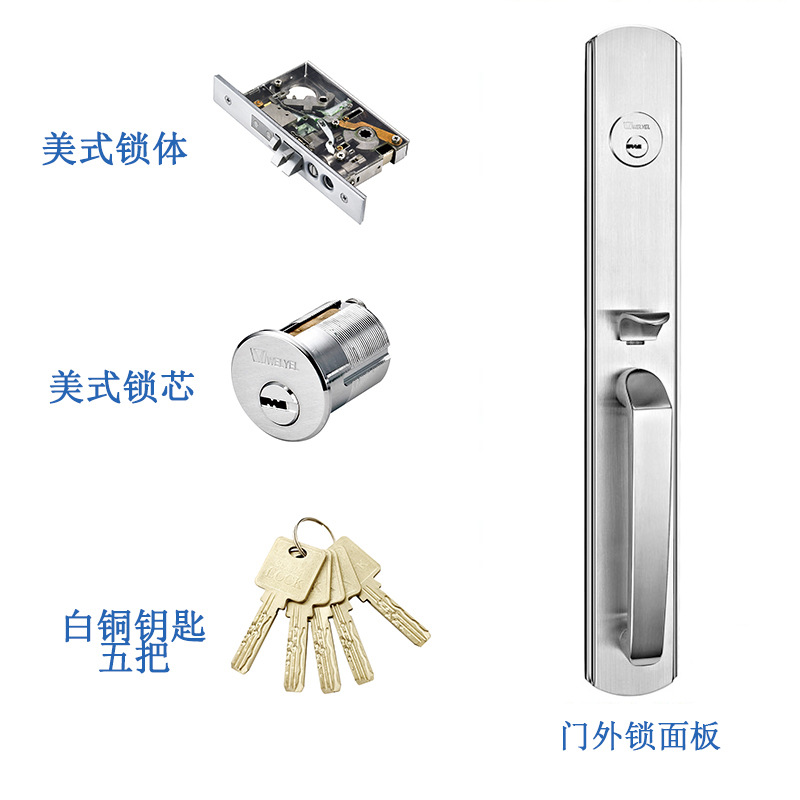 不锈钢门锁家用SUS304美式豪华大门锁对开门防盗中式把手