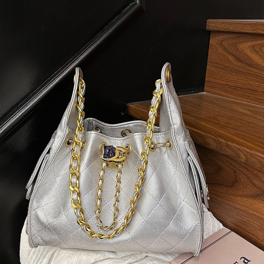 跨境高级2025新款小香风大容量链条水桶斜挎包时尚单肩法式包包