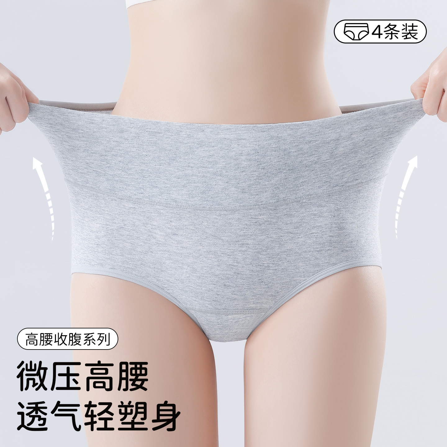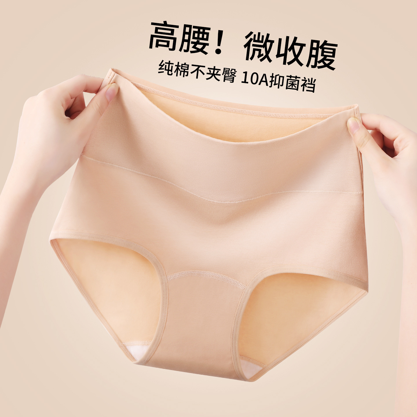 秋冬新款女士内裤95%棉高腰收腹提臀内裤纯色大码胖妹妹三角短裤