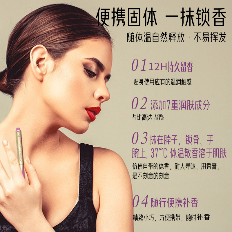 固体香膏笔自然清新淡香一抹留香高级感随身便携按压款香膏笔除臭