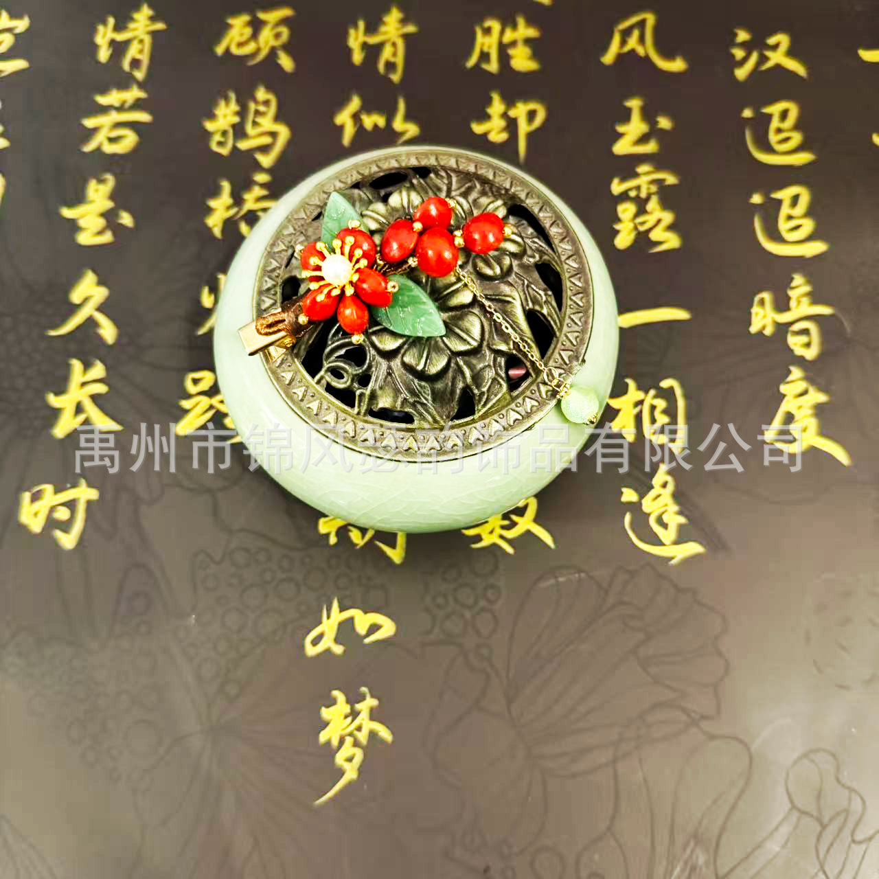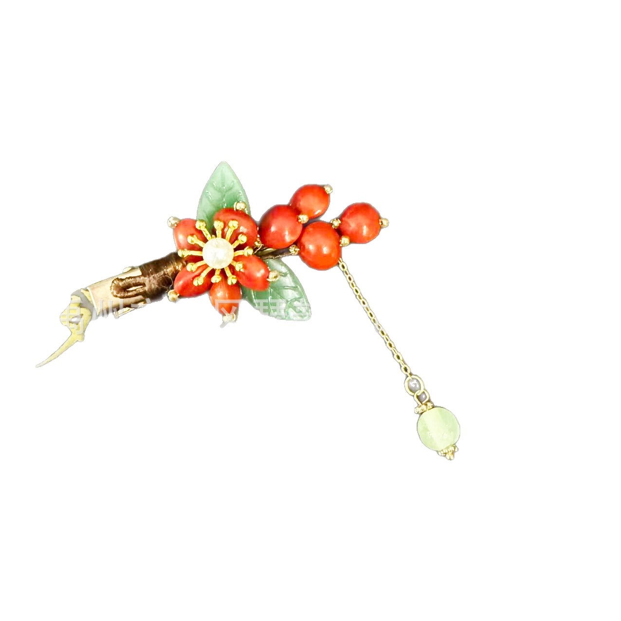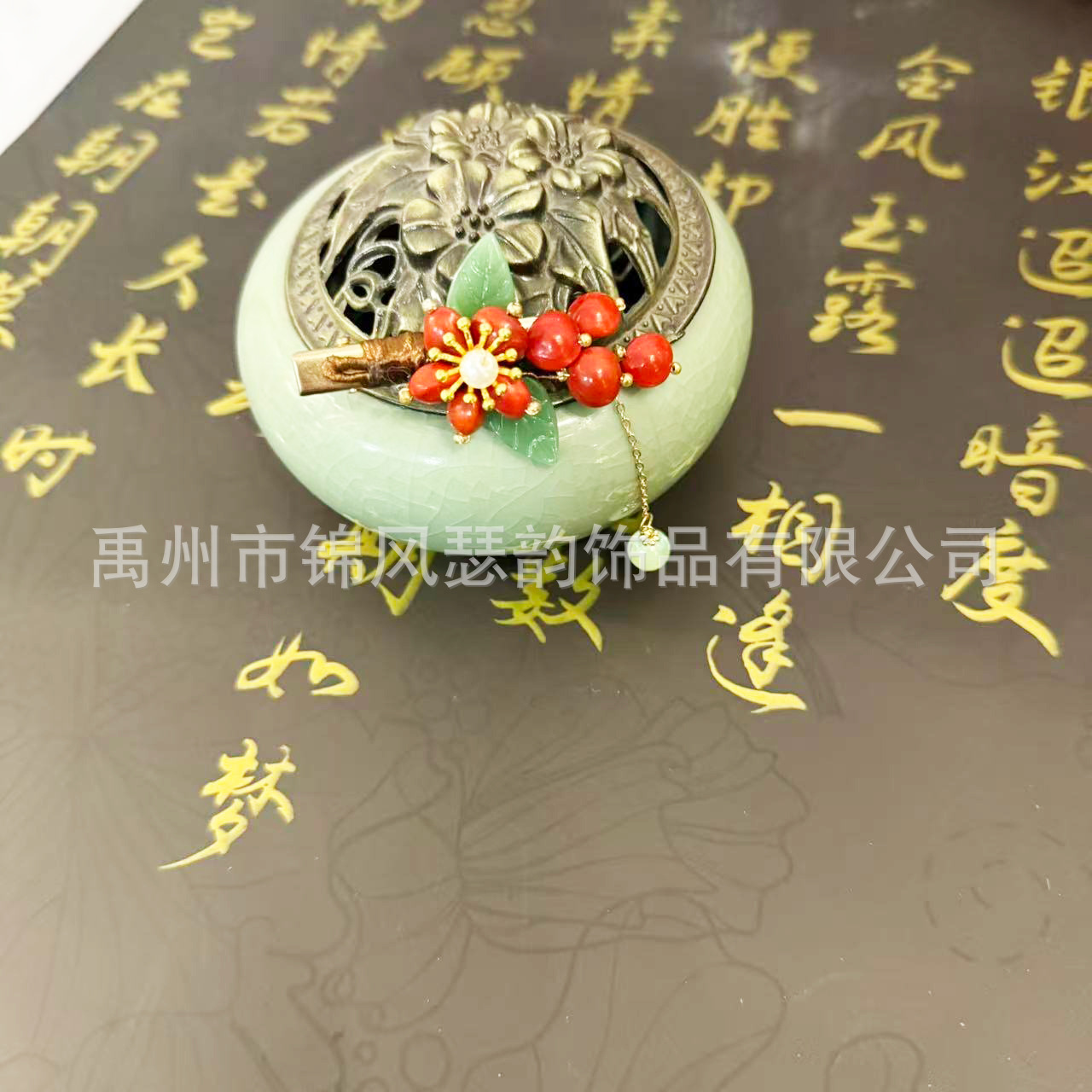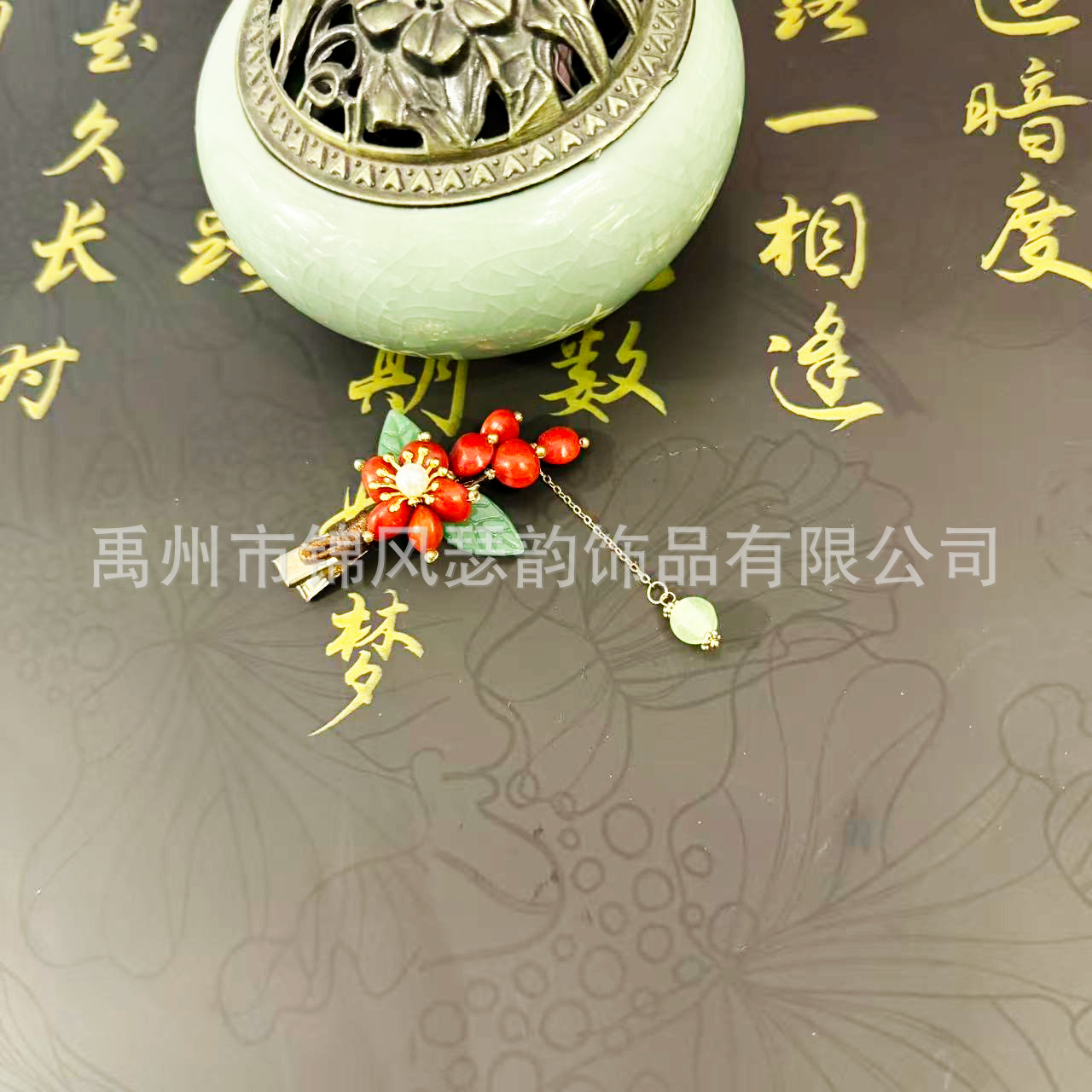 古风汉服流苏发夹古装盘发头饰复古红豆叶子发饰头花对夹发卡