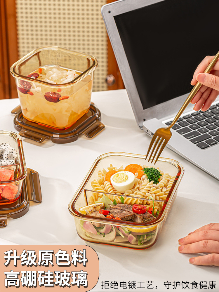 饭盒玻璃微波炉加热专用碗上班族带盖餐盒2025新款水果便当保鲜盒