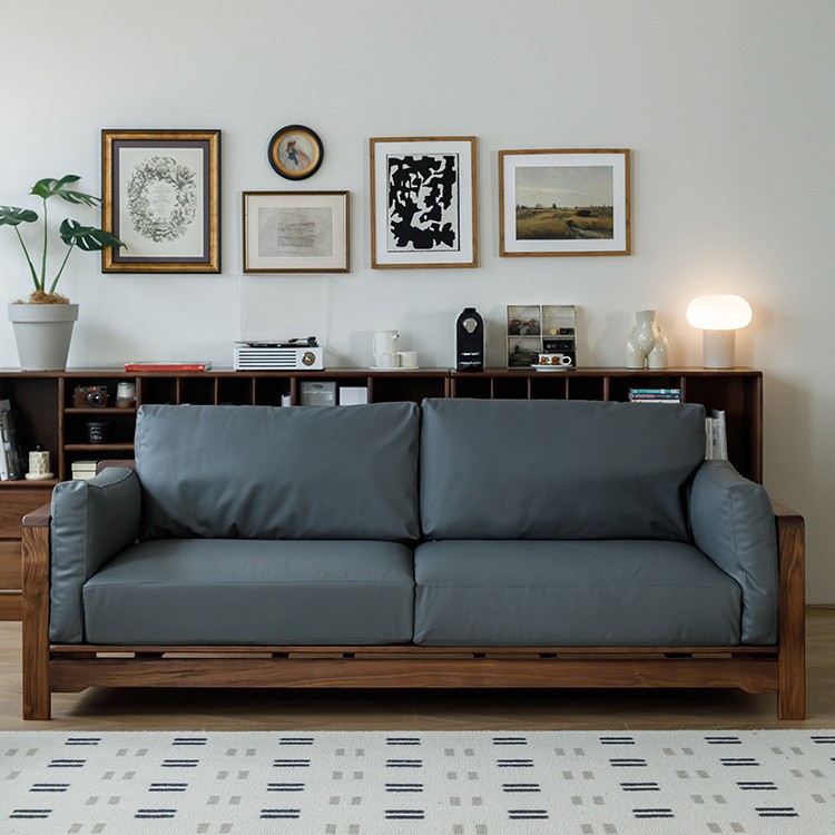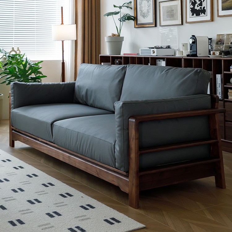 实木黑胡桃沙发三人长椅新中式小户型木质套装现代简约木沙发榫卯