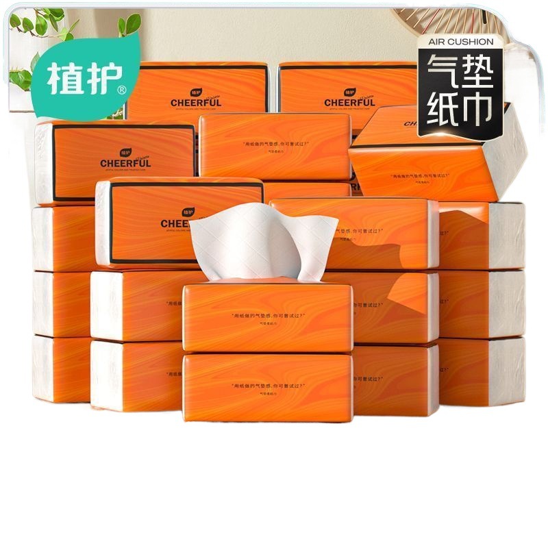 植护整箱批发气垫纸巾悦色橙抽纸家用宿舍卫生纸餐巾纸实惠装纸抽