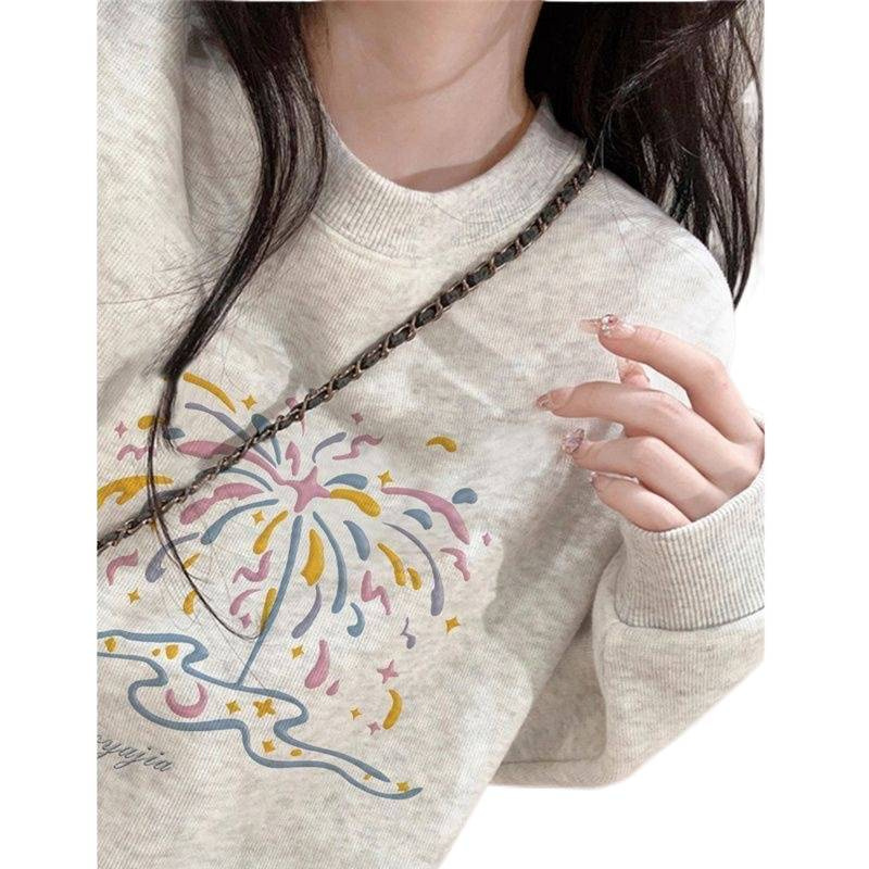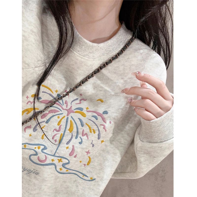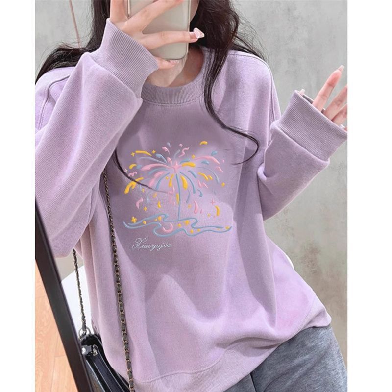 2025跨境新款洋气正肩圆领套头卫衣女秋冬紫色宽松加绒加厚外套潮