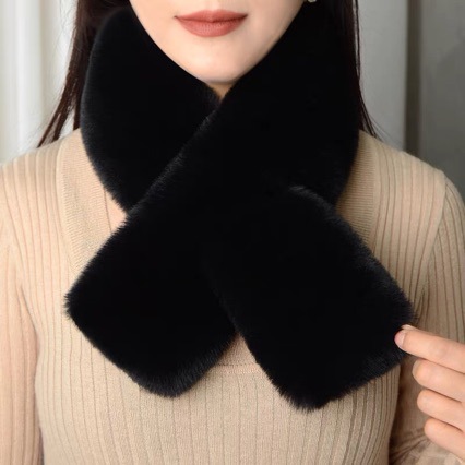 仿兔毛简约毛绒围巾方形百搭毛领护颈批发保暖围脖冬季仿皮草工厂