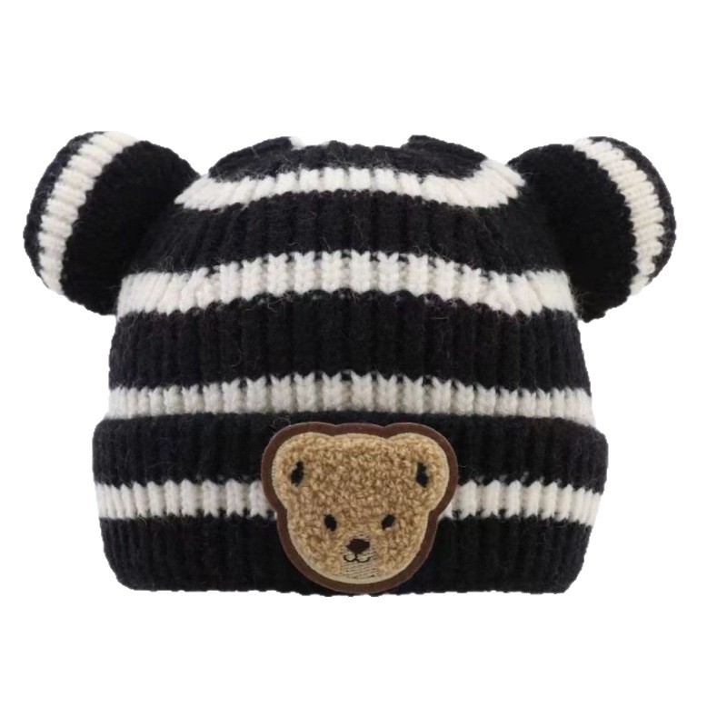 婴儿帽子秋冬季小月龄可爱超萌保暖男女宝宝护耳套头帽条纹毛线帽
