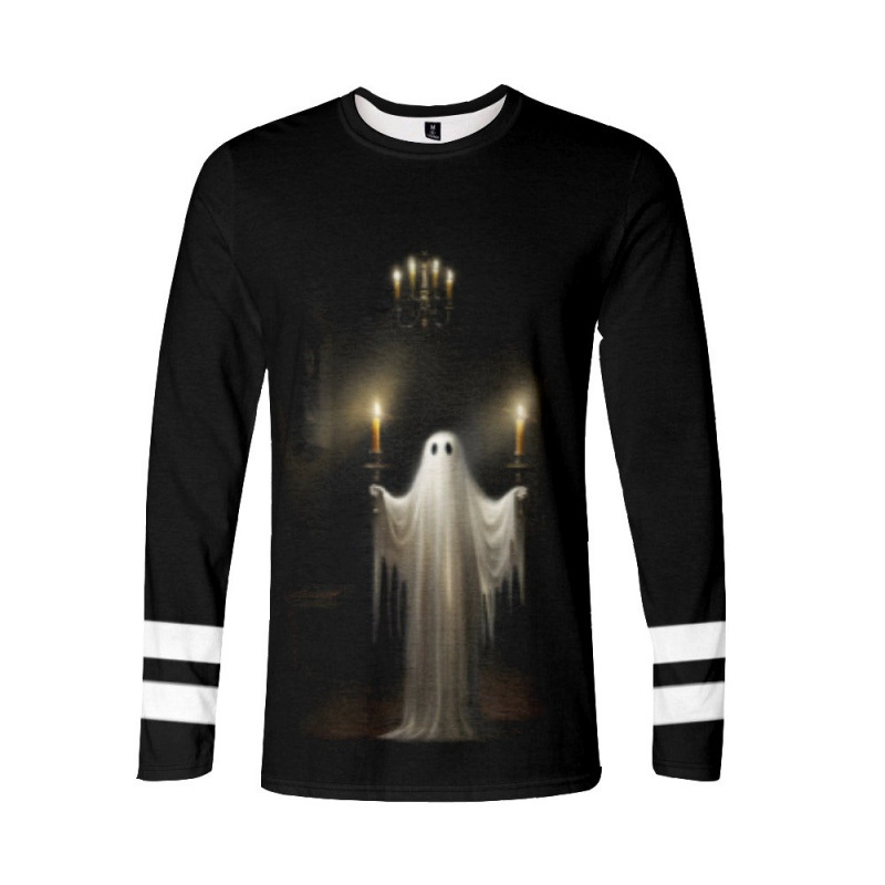 跨境万圣节印花3D数码印花休闲潮流3D长袖女装T恤