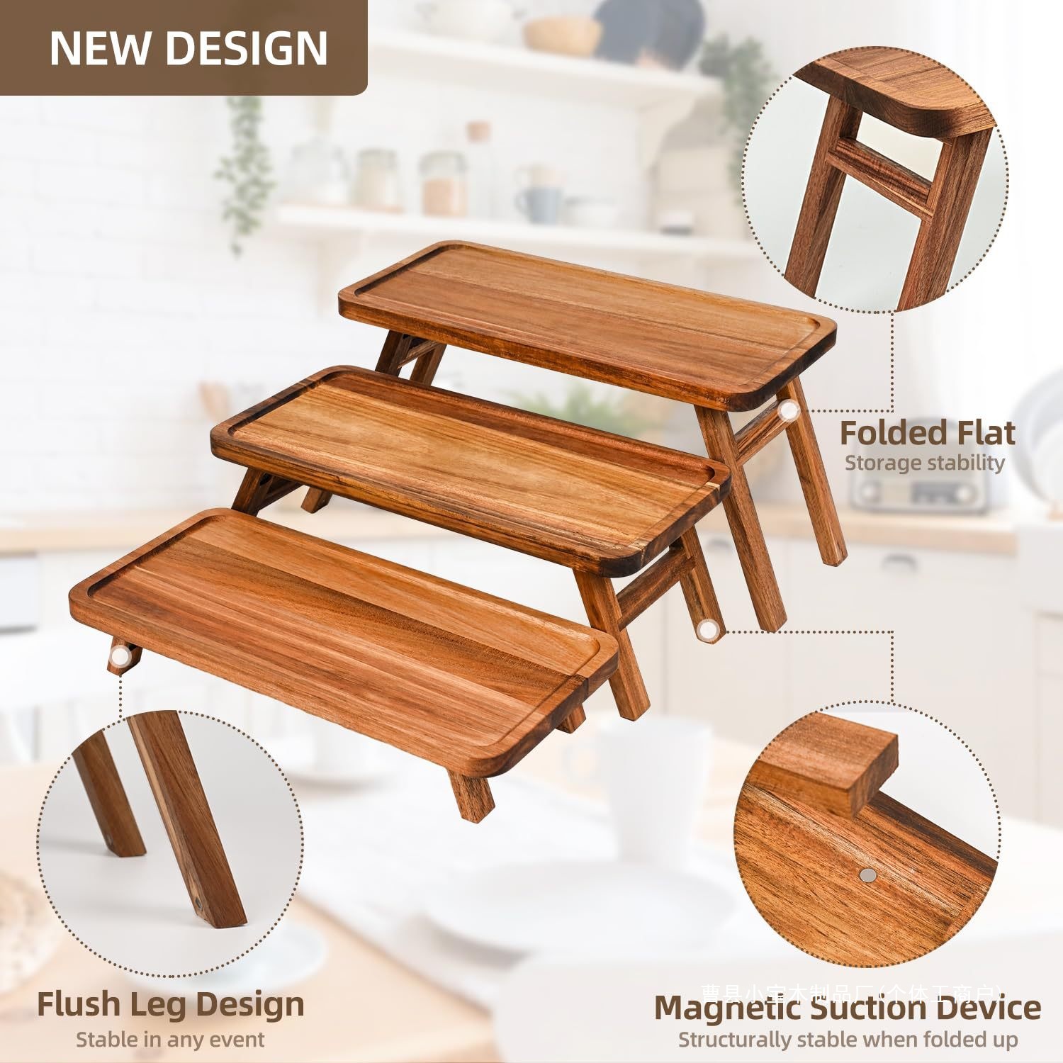 木质置物架托盘创意甜品架户外野餐托盘实木阶梯式展示架置物架定