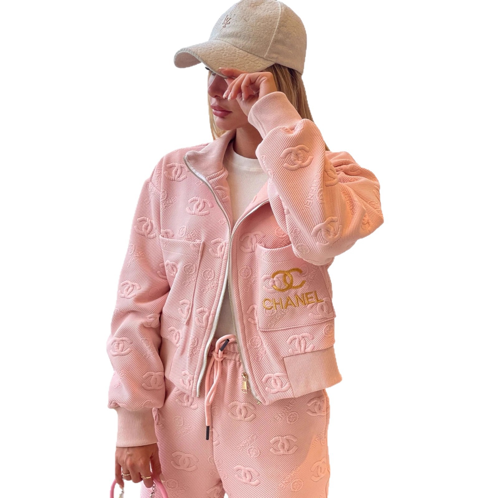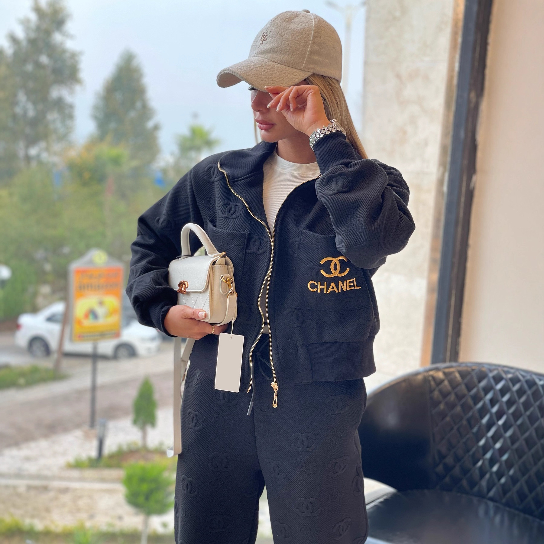 跨境华夫格肌理欧美套装春秋款洋气针织压花长袖长裤套装女装拉链