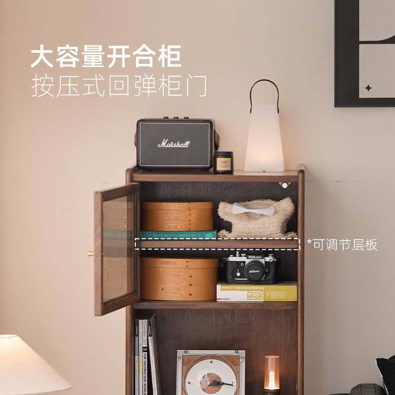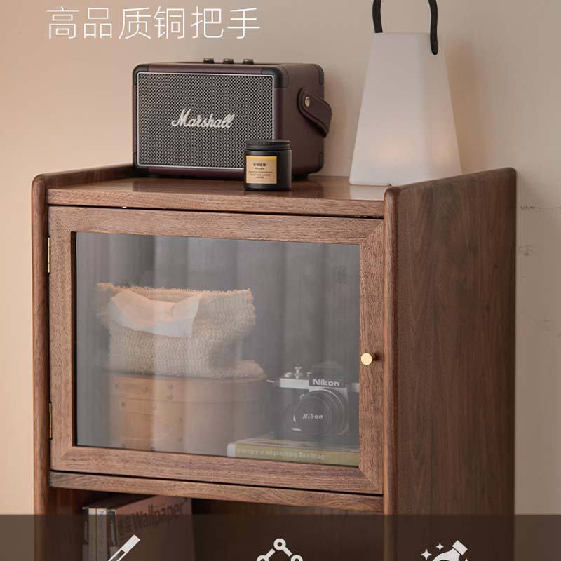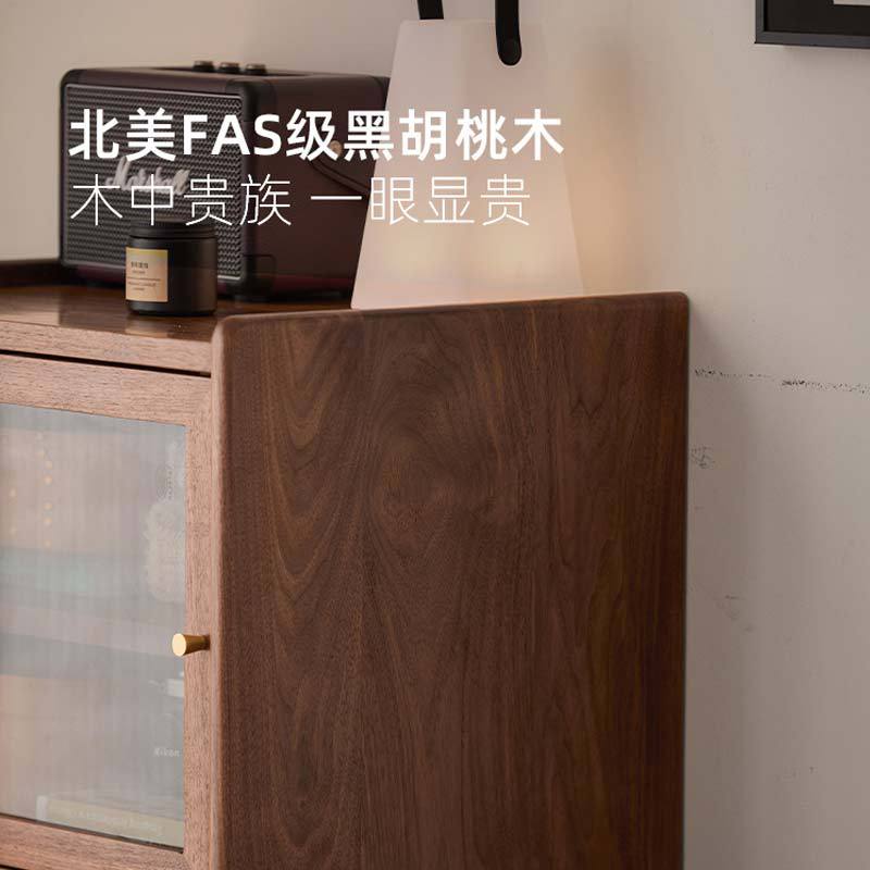 北美黑胡桃实木电视柜边柜客厅轻奢沙发收纳玻璃储物柜酒柜展示柜