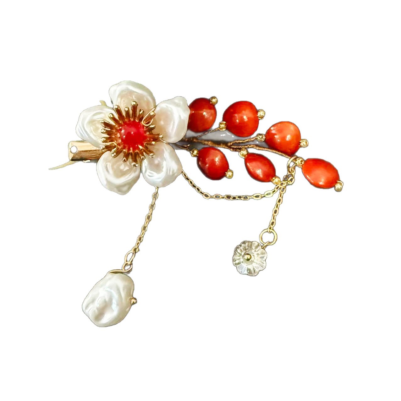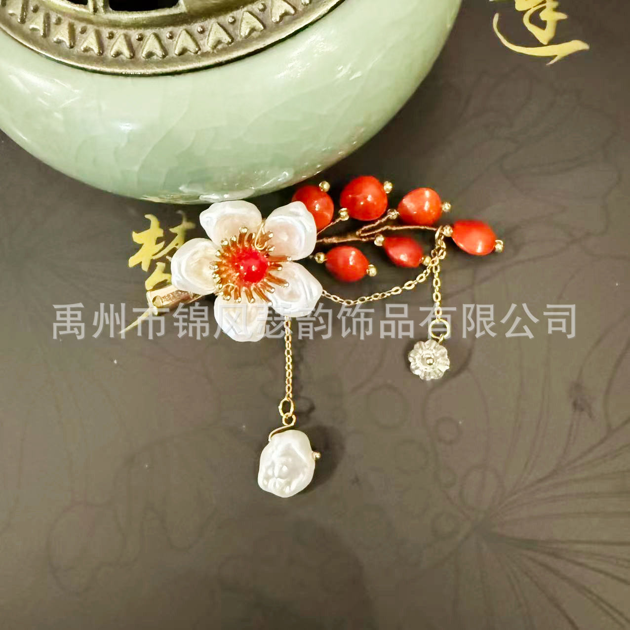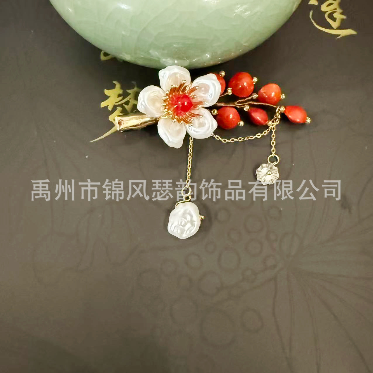 古装发饰古风红豆珍珠花发夹流苏汉服头饰仙气女流苏步摇发夹