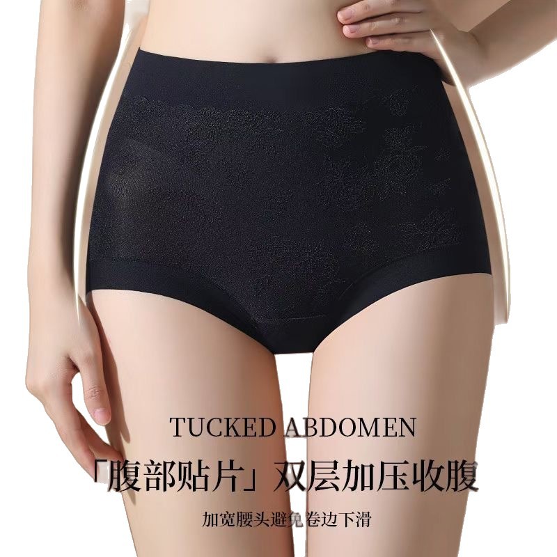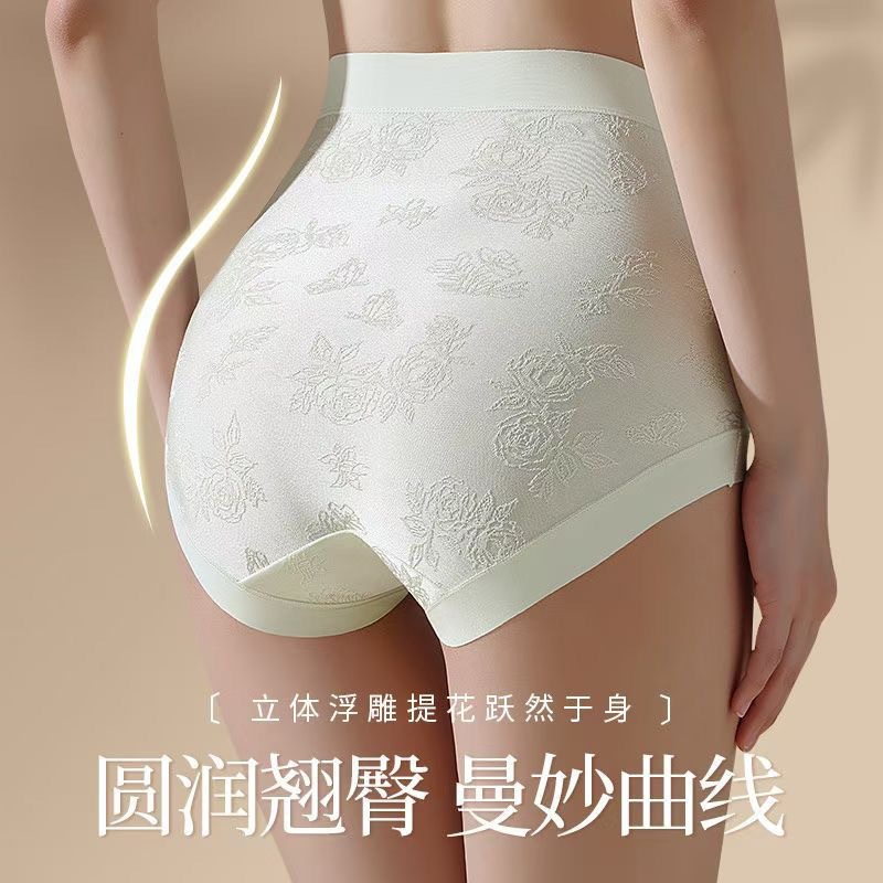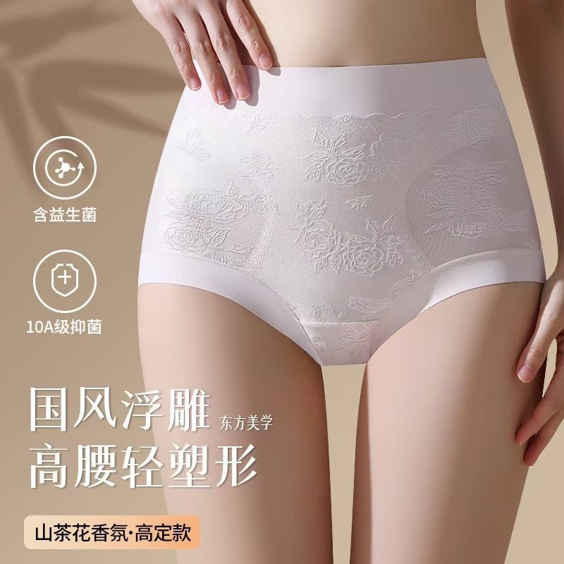 山茶花国风浮雕高腰收腹裤桑蚕丝底裆10A抗菌防夹臂不卷边内裤