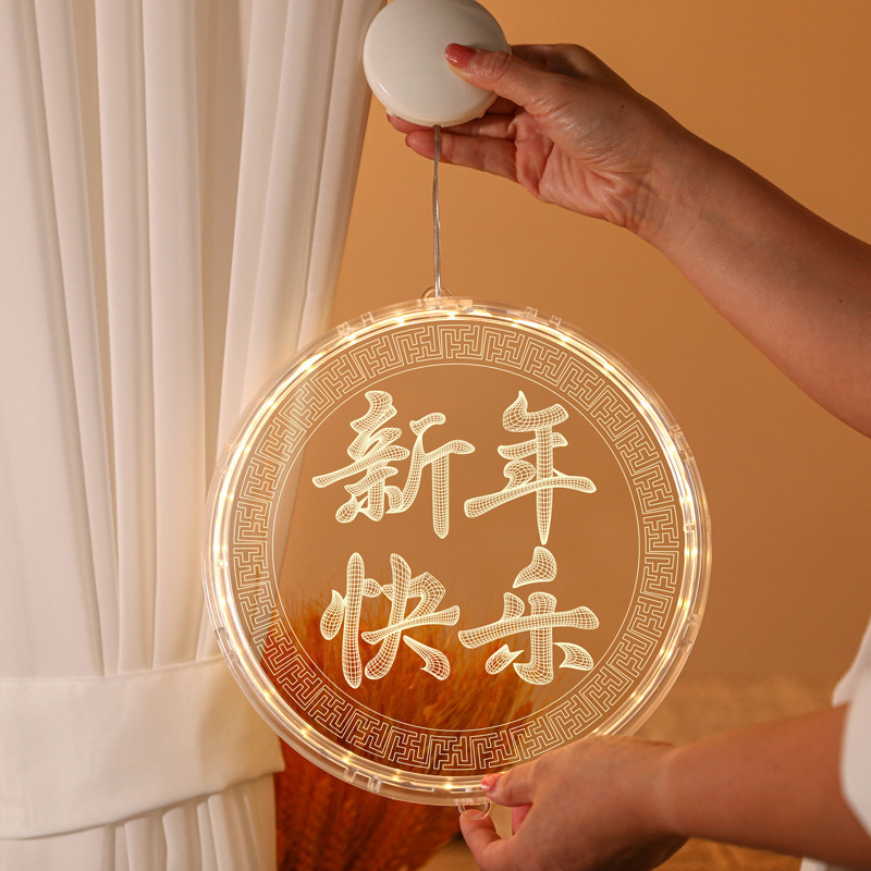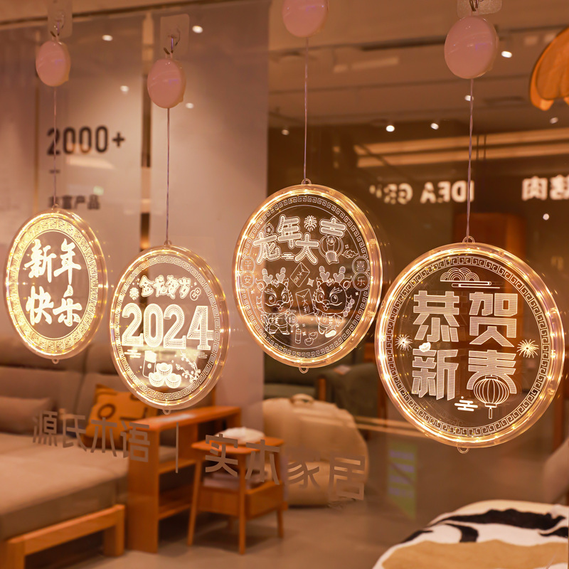 2025新年蛇年福字挂件春节元旦玻璃窗亚克力氛围感装饰发光挂饰墙