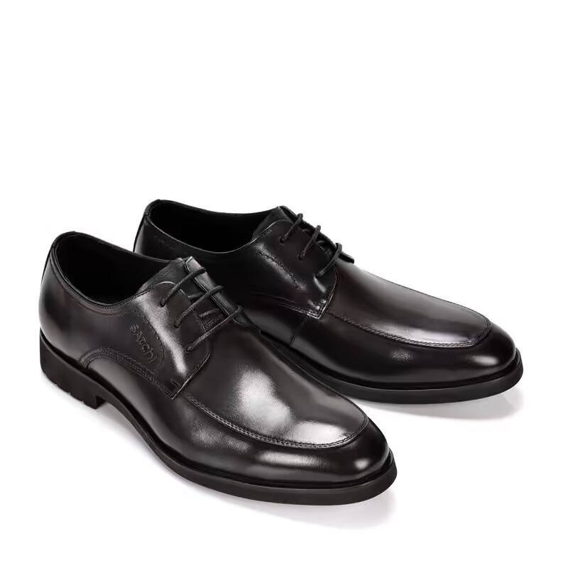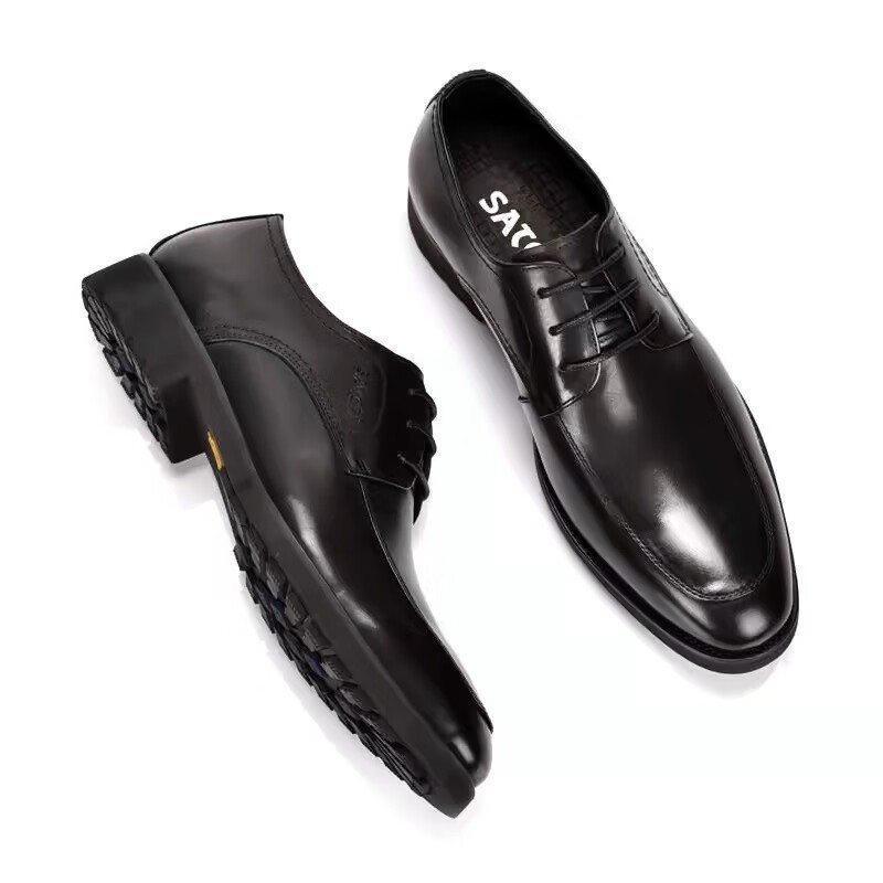 沙驰男鞋新款软底真皮系带商务正装皮鞋英伦风牛皮德比鞋时尚素面