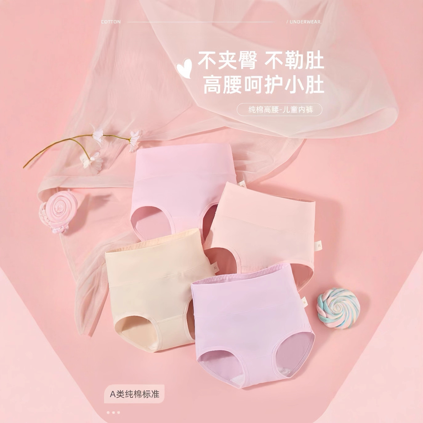女童内裤儿童高腰三角裤中大童护肚女孩内裤95%棉透气平角短裤