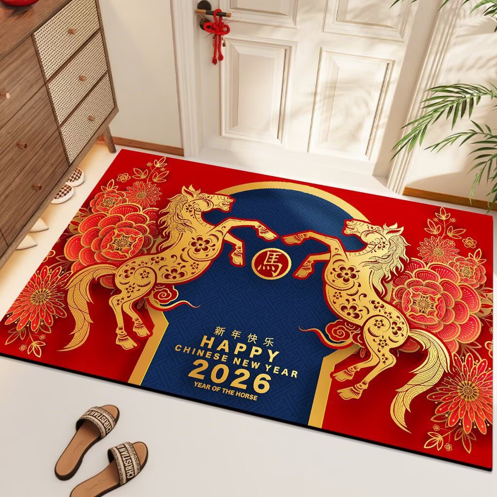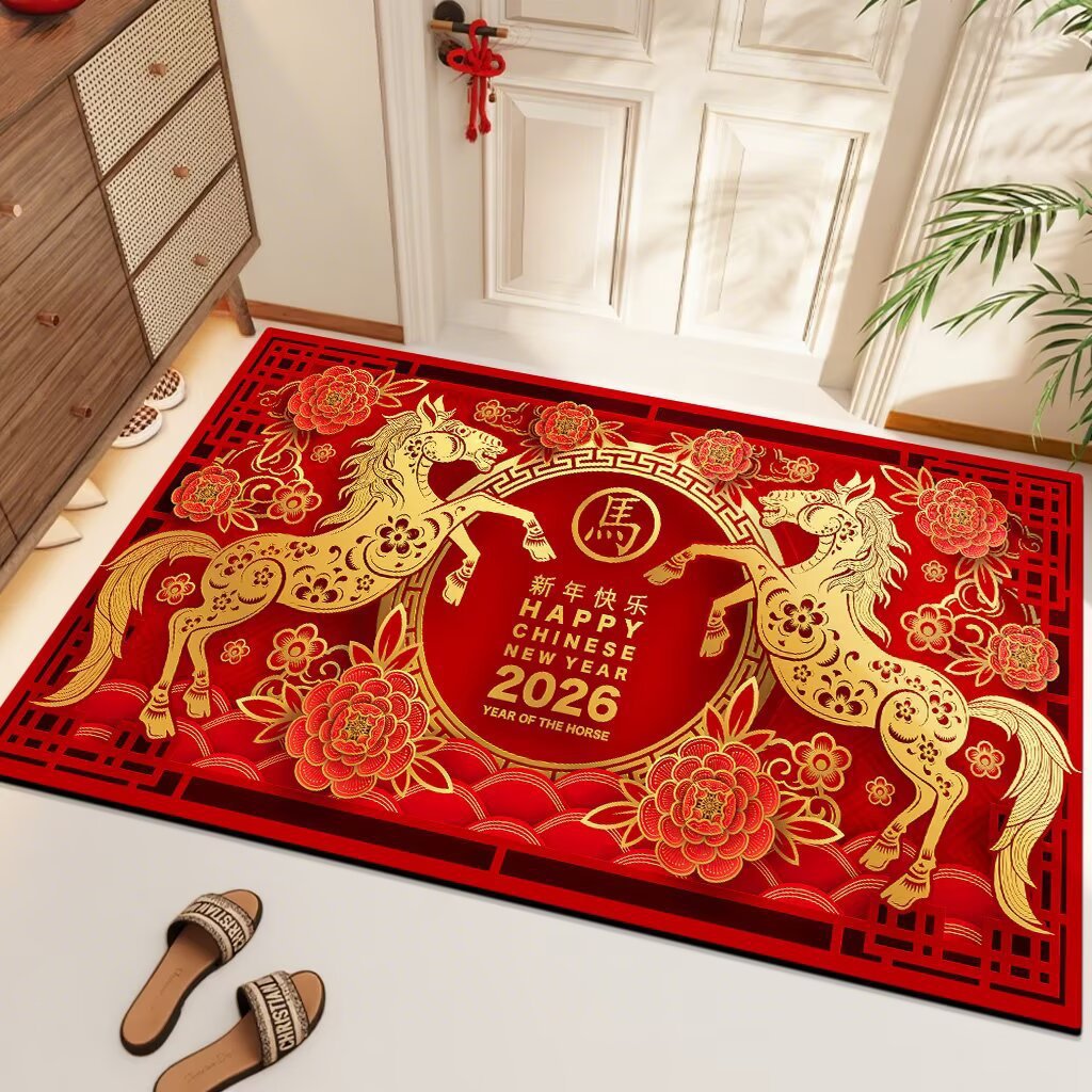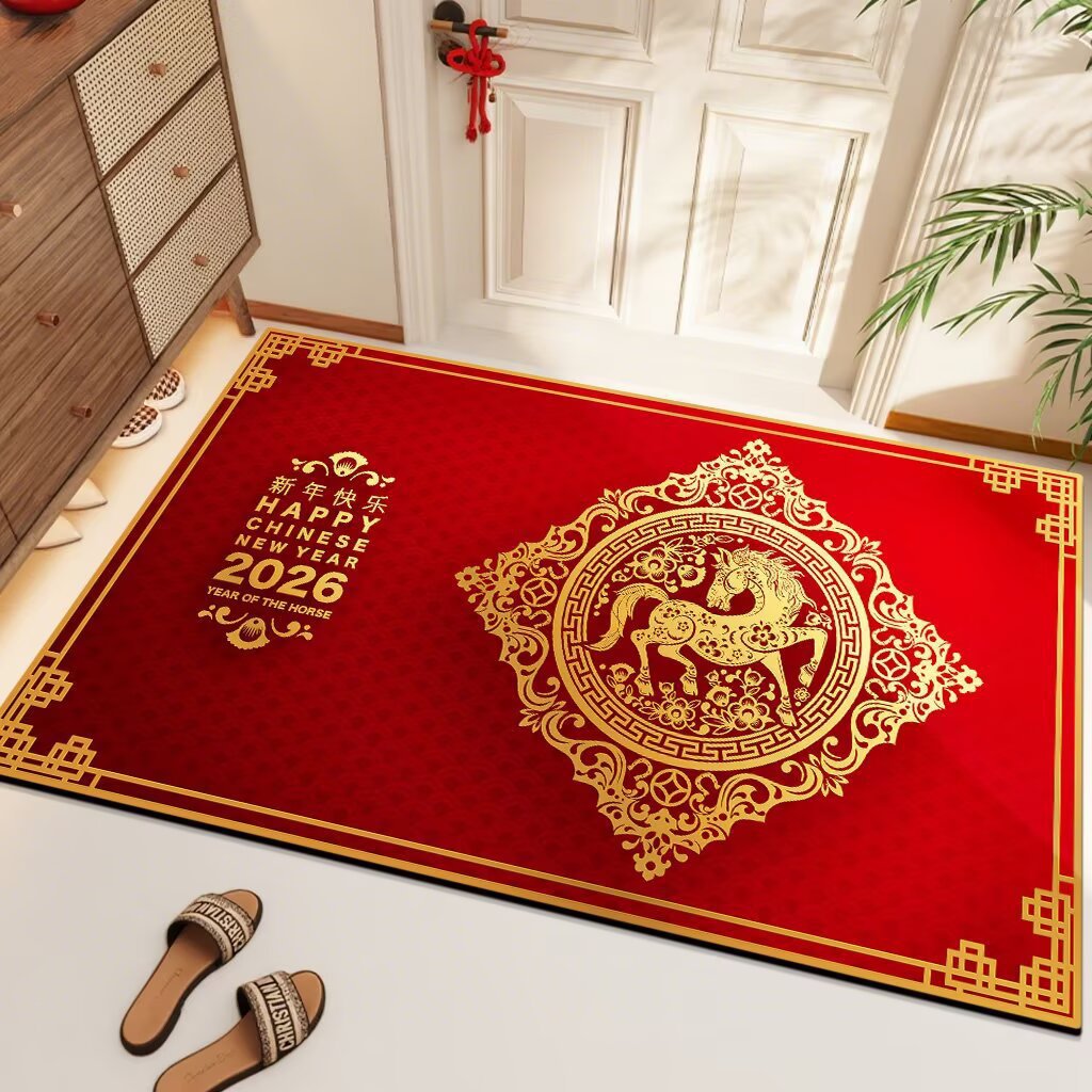 2026年新中式红门垫马年红色地垫进门垫卡通入户门垫红地毯防滑