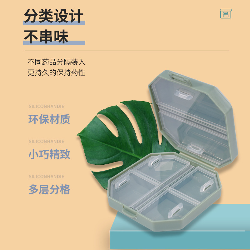 方砖6格多功能收纳药盒可印LOGO密封防潮胶囊药丸收纳盒厂家批发