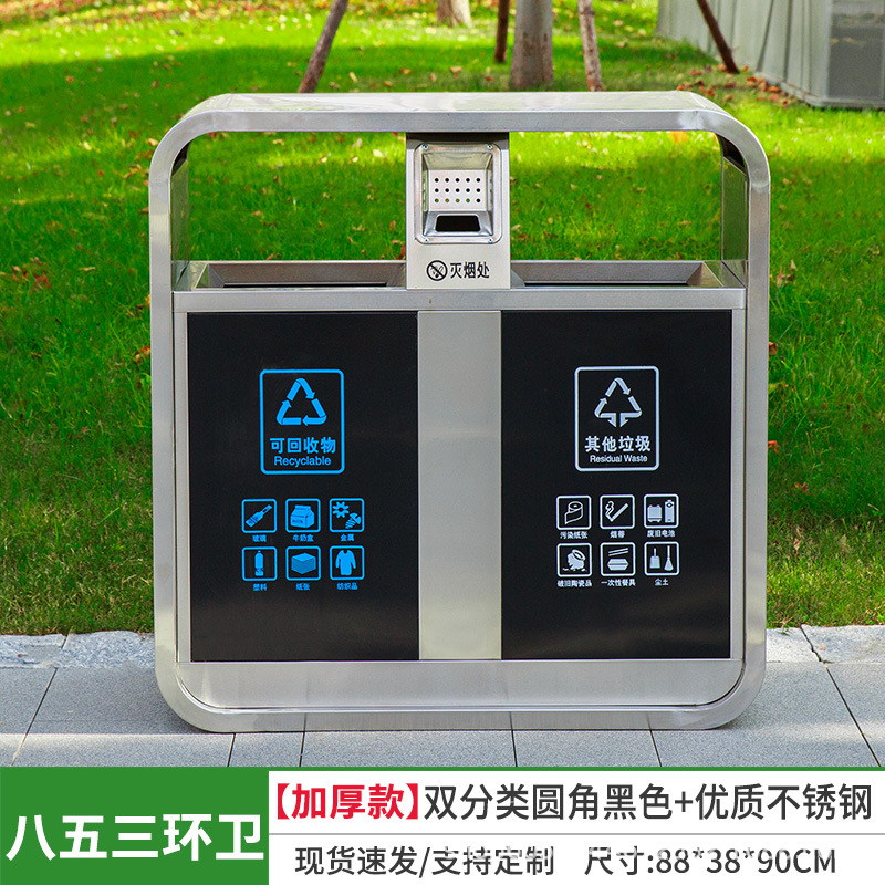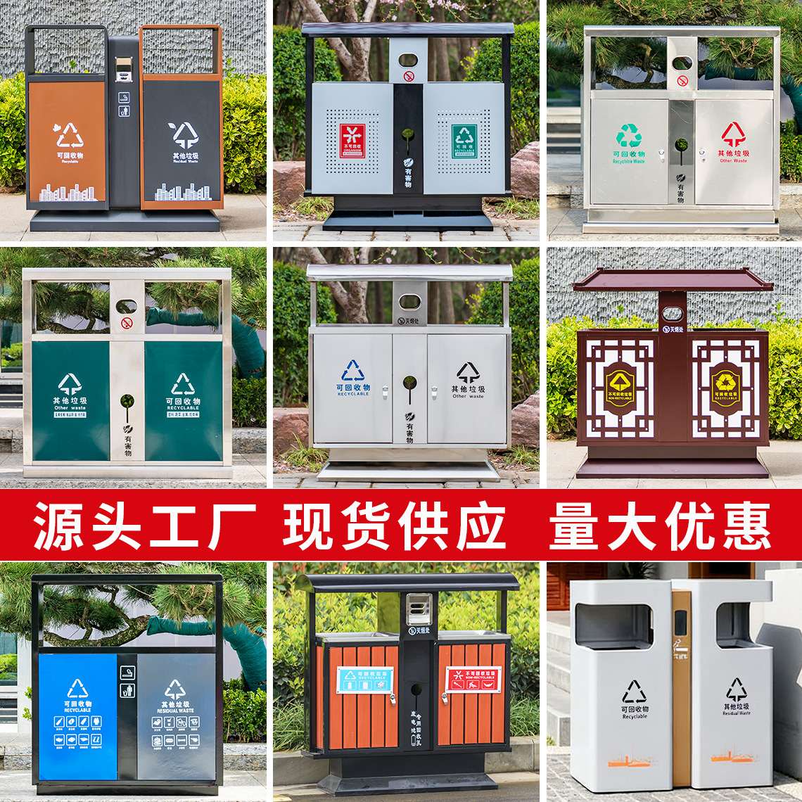 | 规格 | 新款双分类侧面投口灰色【优质镀锌板】 | 规格 | 不锈钢永康桶绿门【优质不锈钢】 |