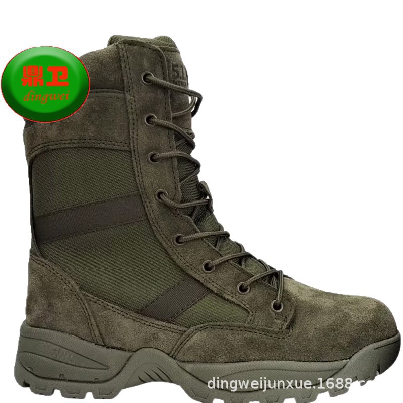侧面拉链靴牛皮军绿色战术靴 厂家耐磨防滑鞋透气作战越野登山鞋
