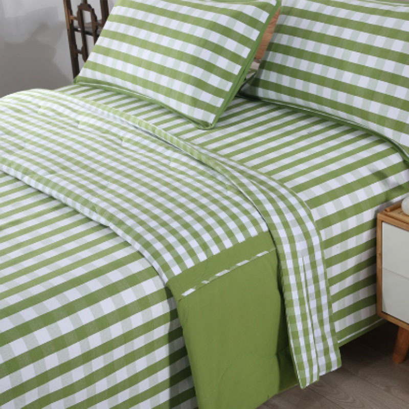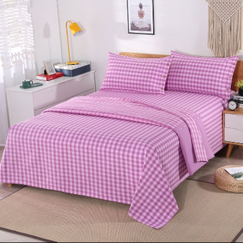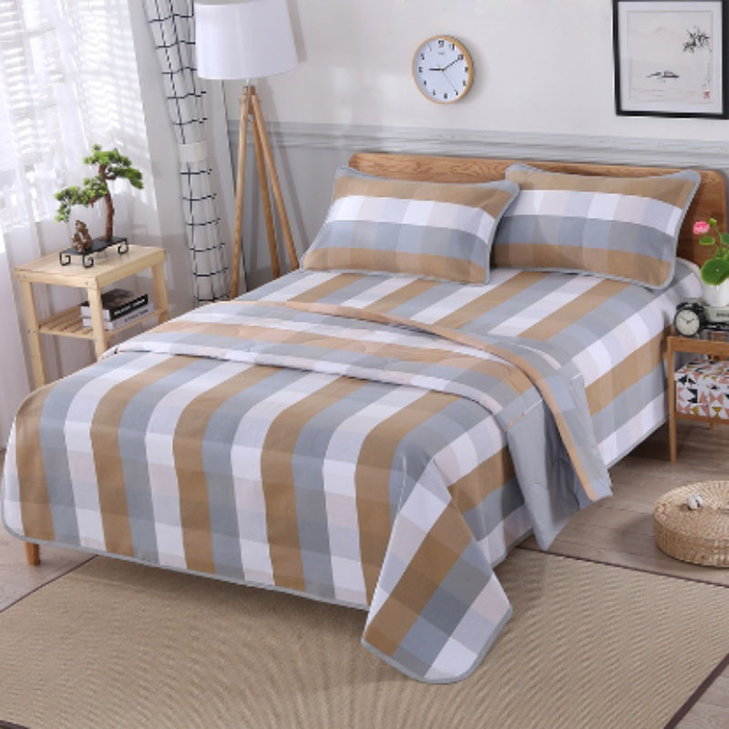 老粗布三件套纯棉双人床单床上用品四季用家用格子夏凉被全棉枕套