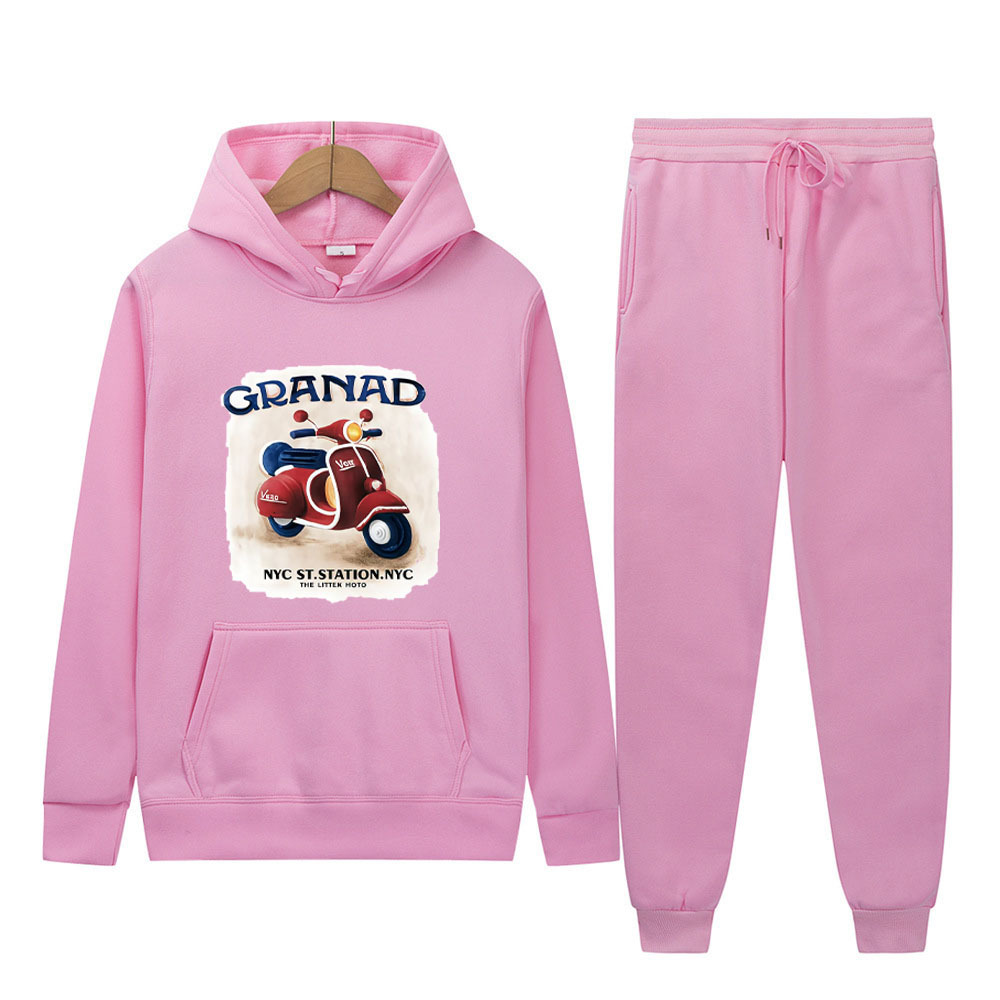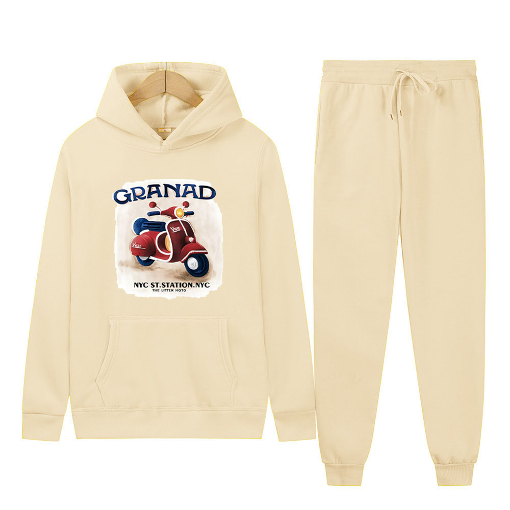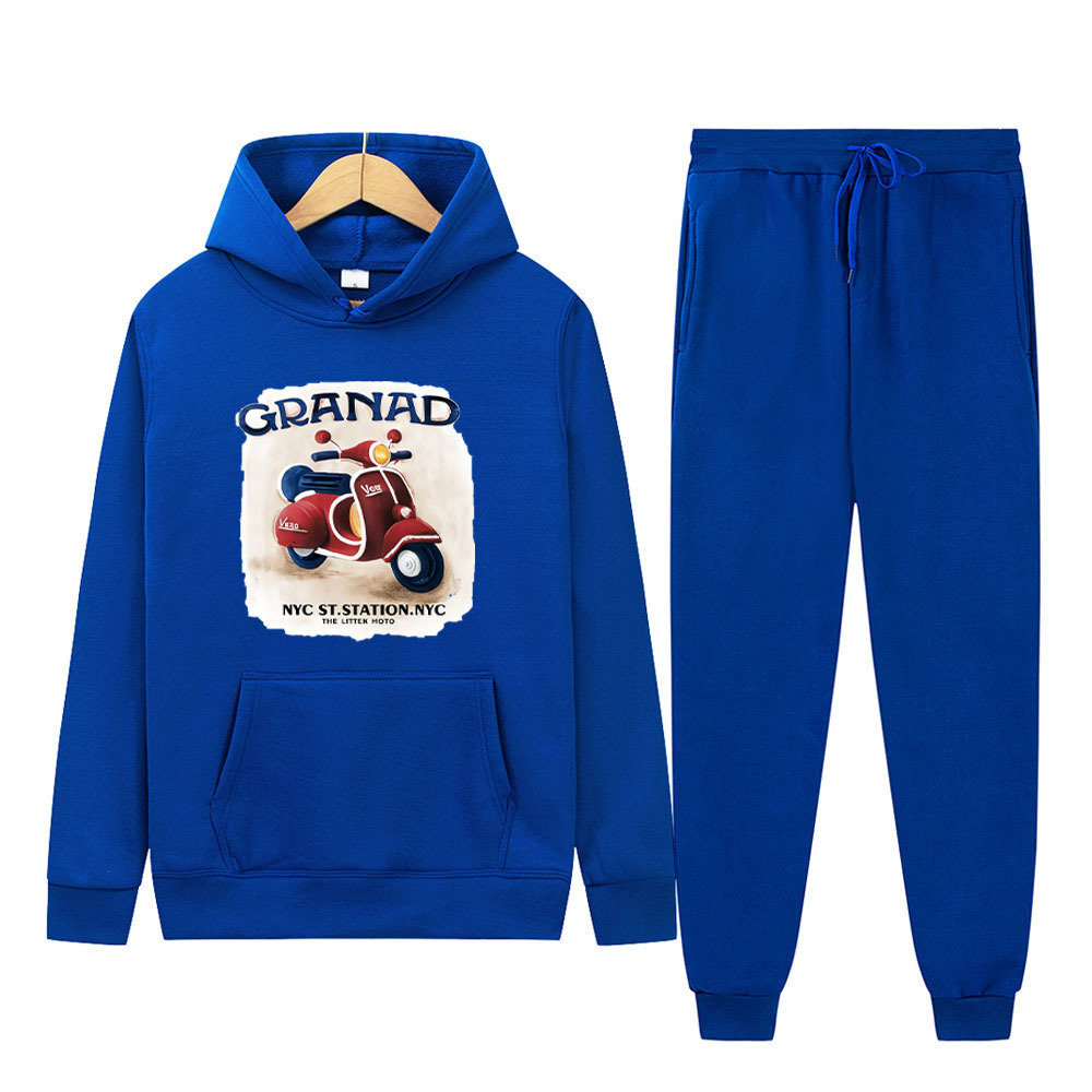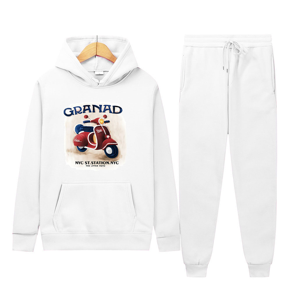 跨境电商潮牌电动车图案秋冬卫衣男女式潮流休闲运动连帽卫衣套装
