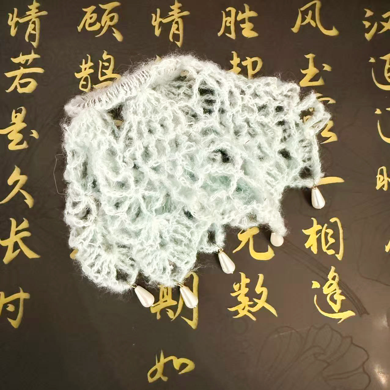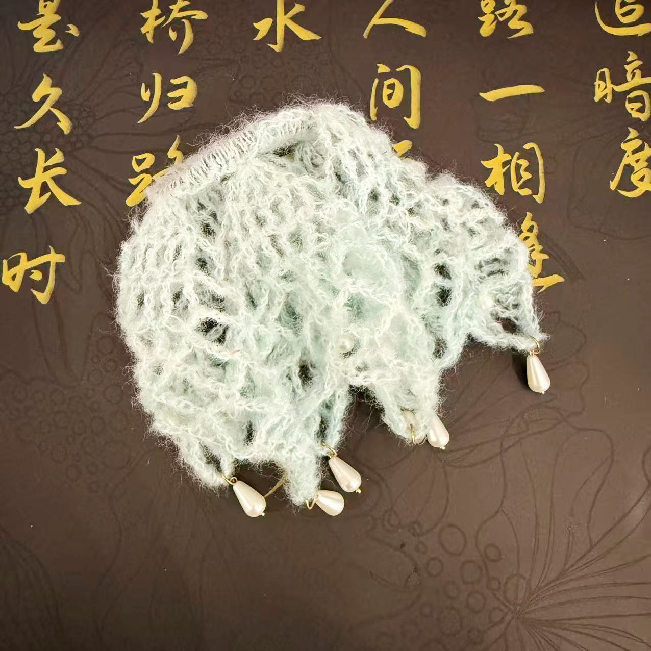 手工编织时尚镂空花朵个性镂空珍珠钩织发圈发网头饰成品发圈