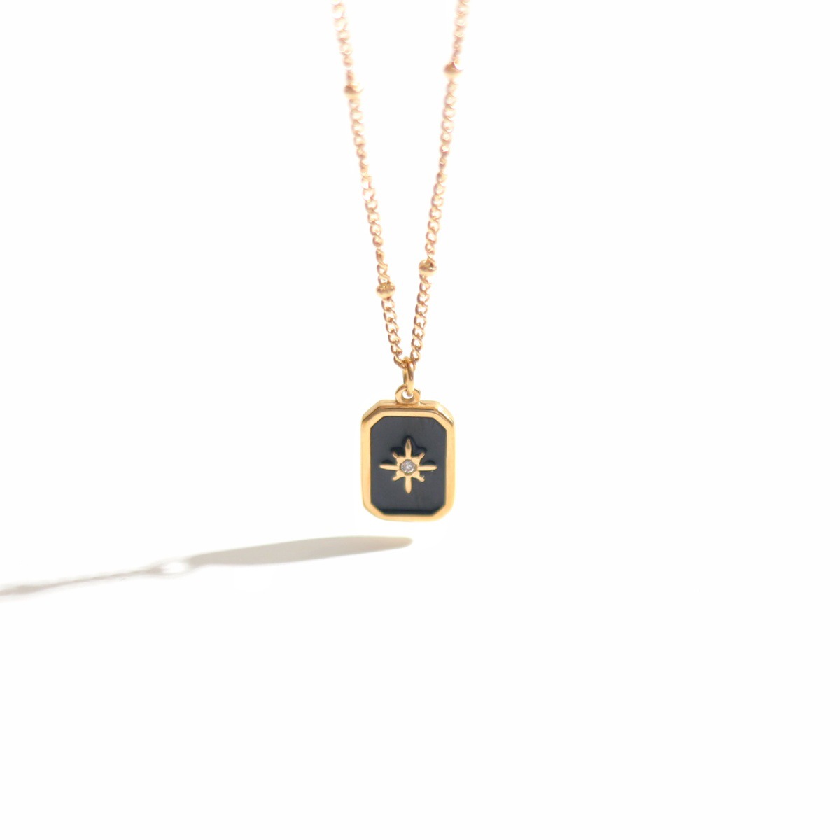 轻奢高级感滴油镶钻八芒星复古小方牌钛钢项链女小众百搭锁骨链